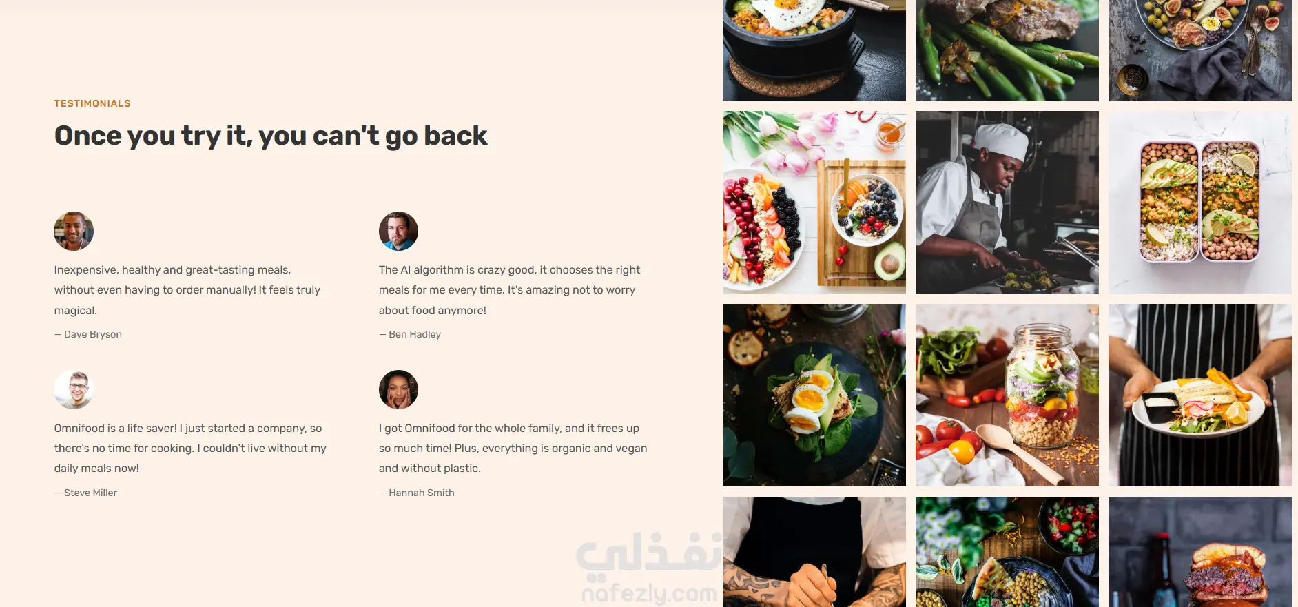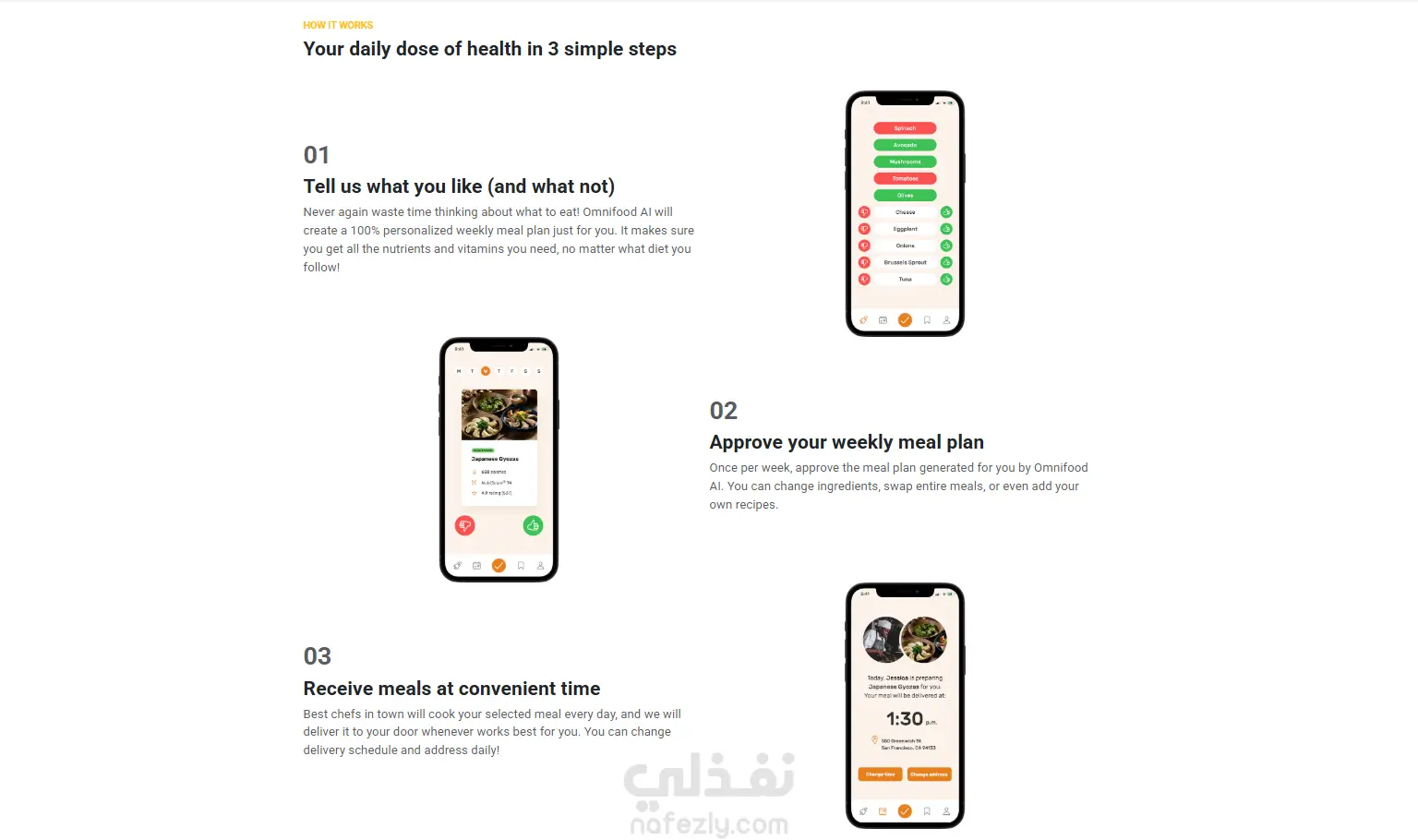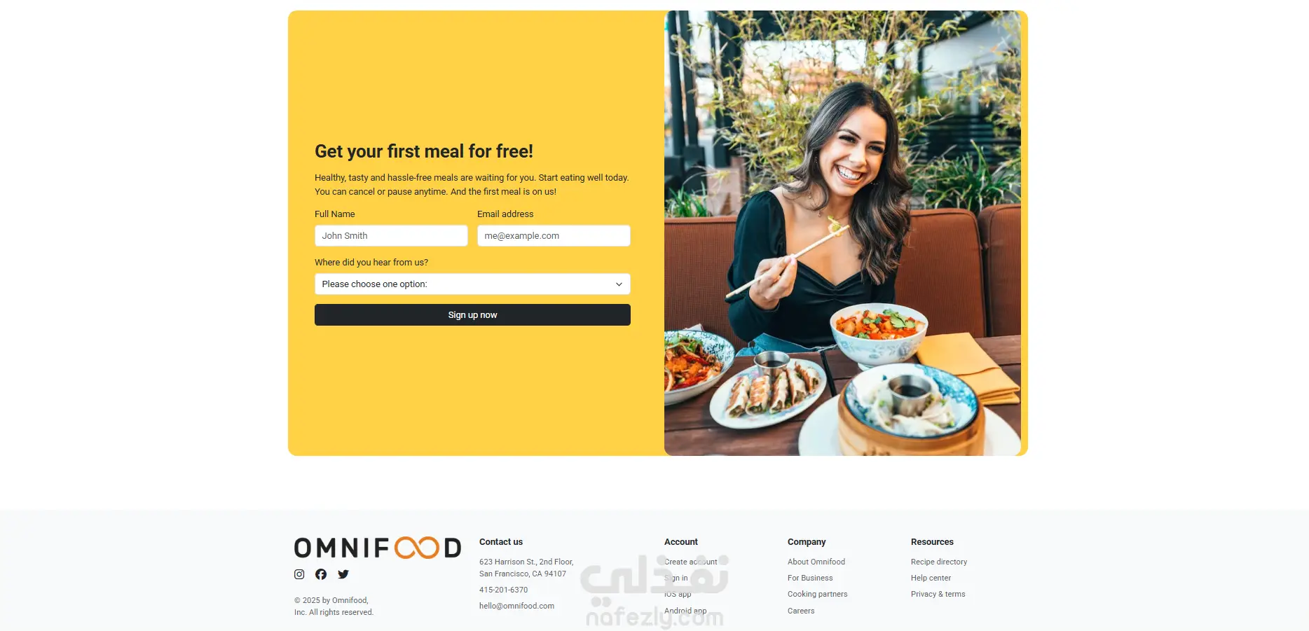 Omnifood هو موقع وهمي (غير حقيقي) يقدم خدمة توصيل طعام صحي مخصص حسب احتياجاتك الغذائية، عبر الاشتراك الشهري. الفكرة خلفه تعليم تصميم واجهات احترافية واستجابة الموقع لأجهزة مختلفة (Responsive Design).