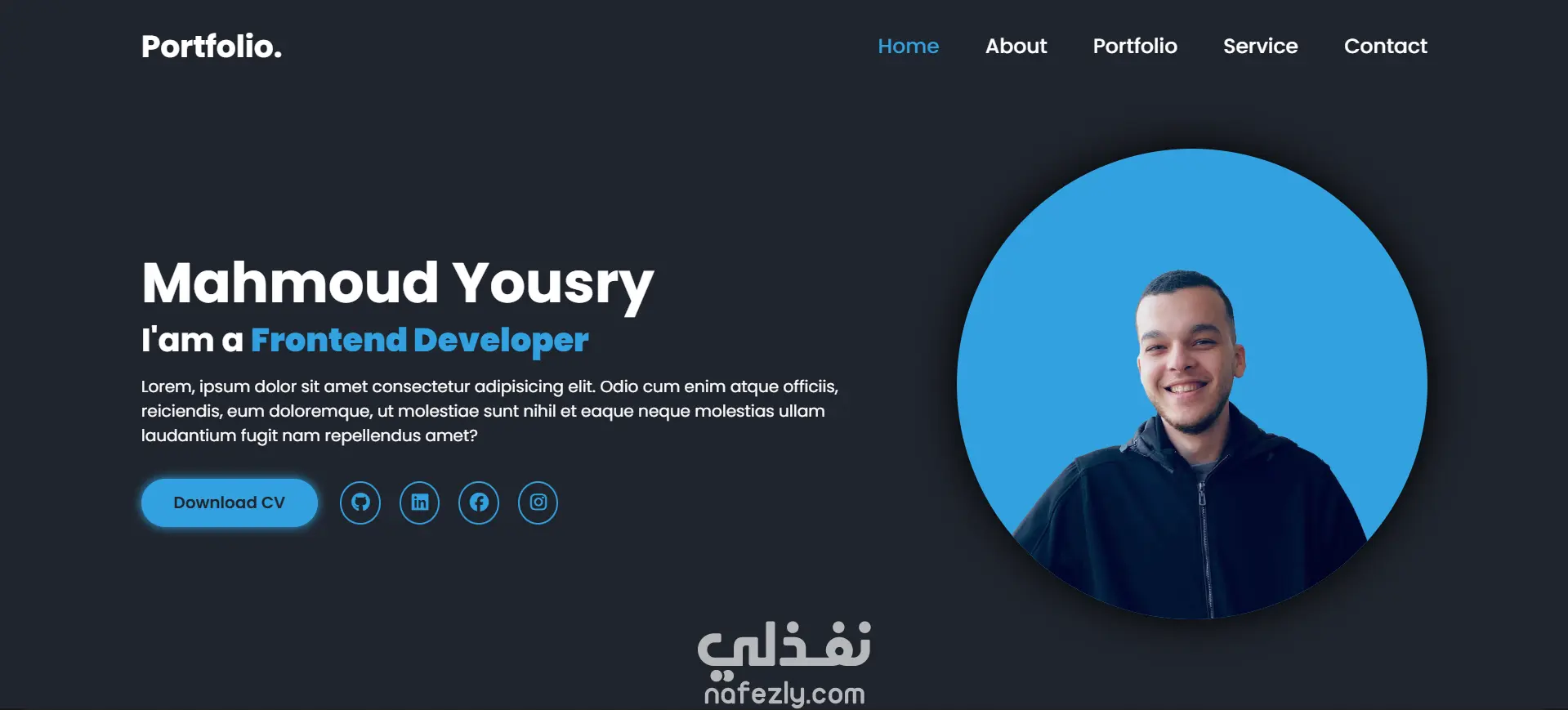 portfolio احترافي لعرض الأعمال وابراز العروض بواسطة HTML, CSS, JS