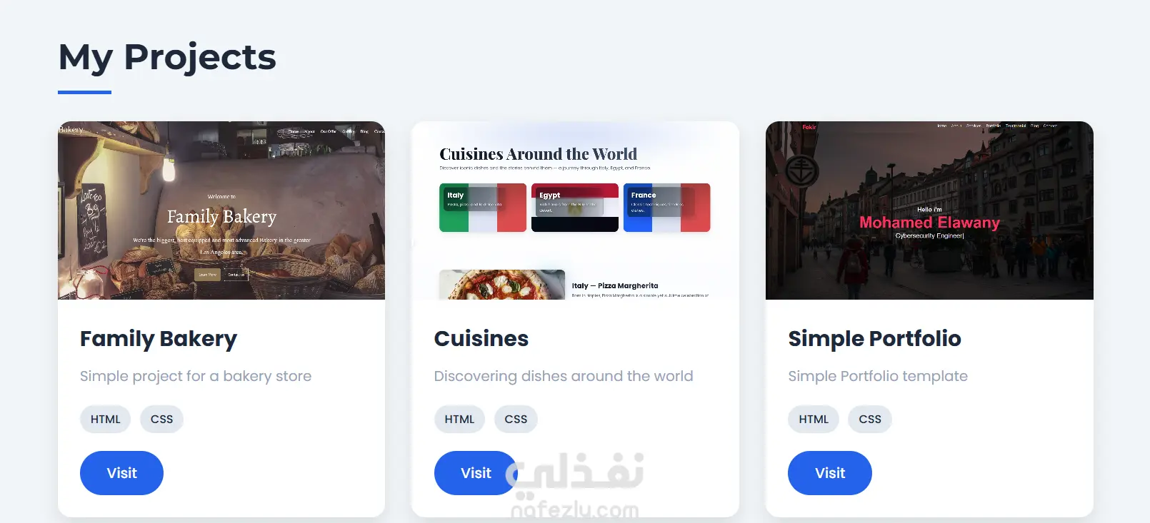 قسم "المشاريع" (Projects) يعرض الأعمال السابقة بطريقة مرتبة ومحترفة.