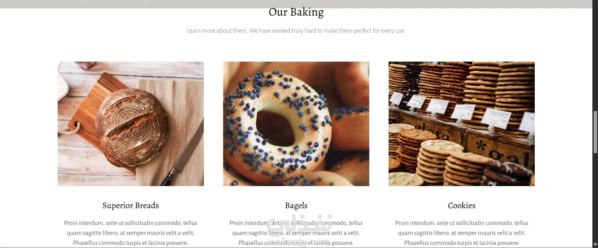 موقع bakery لعرض المنتجات مع ادراج وسيلة للتواصل بواسطة HTML, CSS, JS