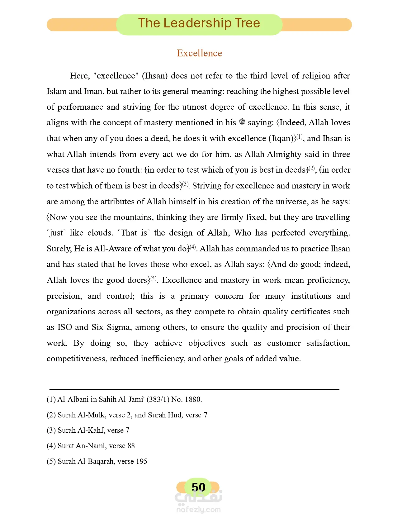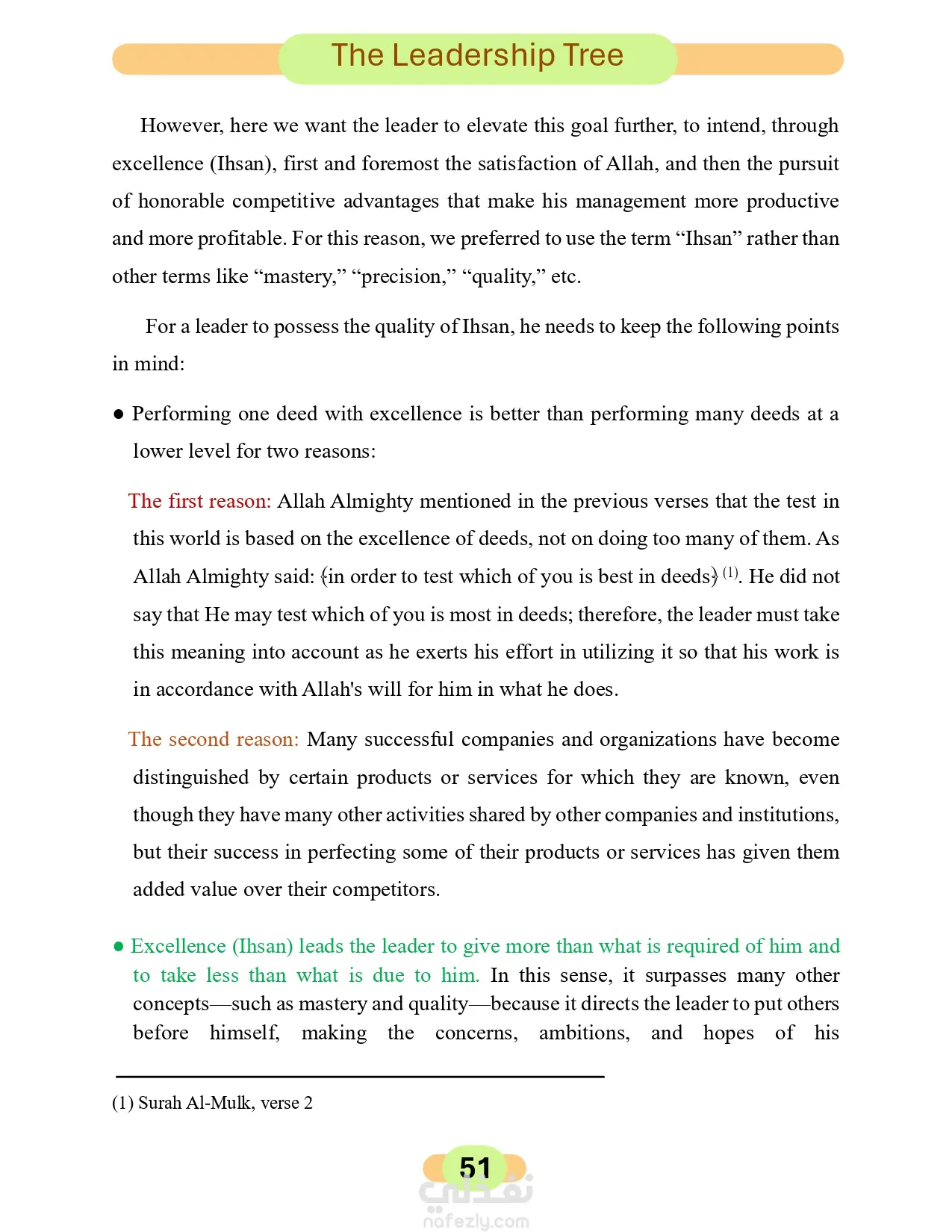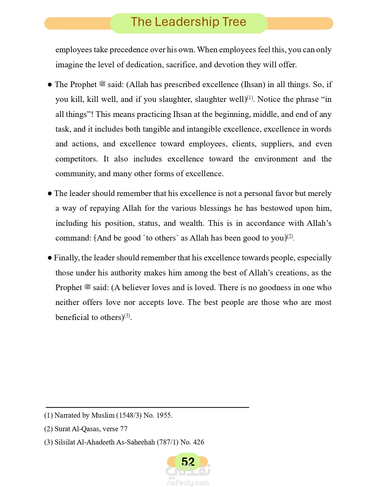 هذا جزء من كتاب شجرة القيادة المترجم والمراجع. تم تصحيح بعض الجمل والكلمات للتناسب مع المعنى المطلوب. تم استخدام بعض مواقع المراجعة و مهارات اللغات العربية و الإنجليزية ( TOEFL C1) المكتسبة.