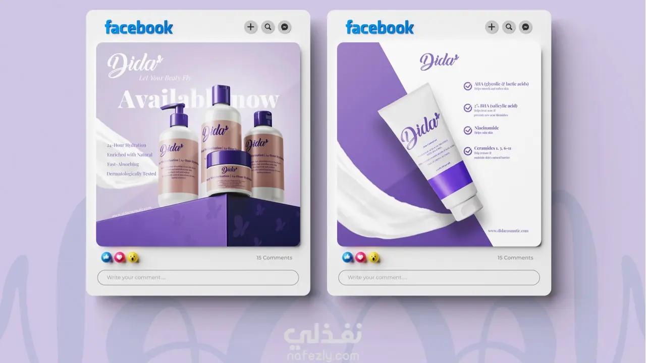 عرض شامل لتصميم إعلانات وهوية منتج عناية بالبشرة – Dida Cosmetics