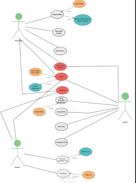 UML Diagrams لتطبيق Tawseela (توصيل مشاوير + تأجير عربيات)