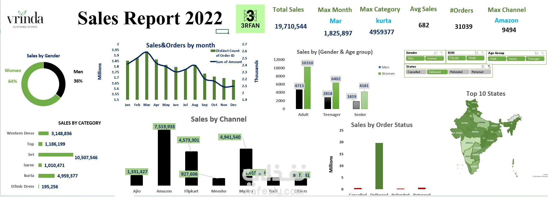 تحليل مبيعات varinda store )Clothing studio)