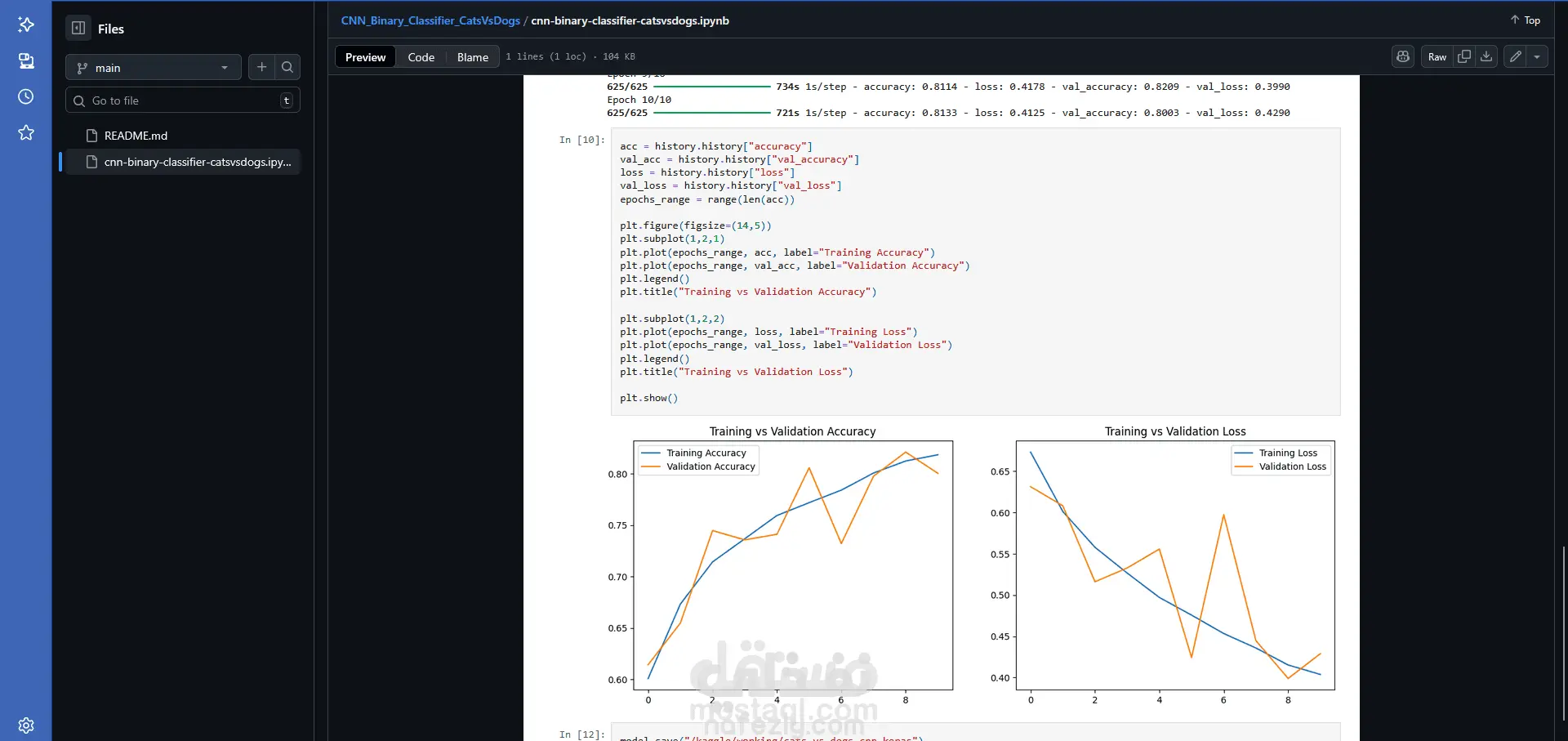 تصنيف صور القطط والكلاب باستخدام الشبكات العصبية التلافيفية (CNN)