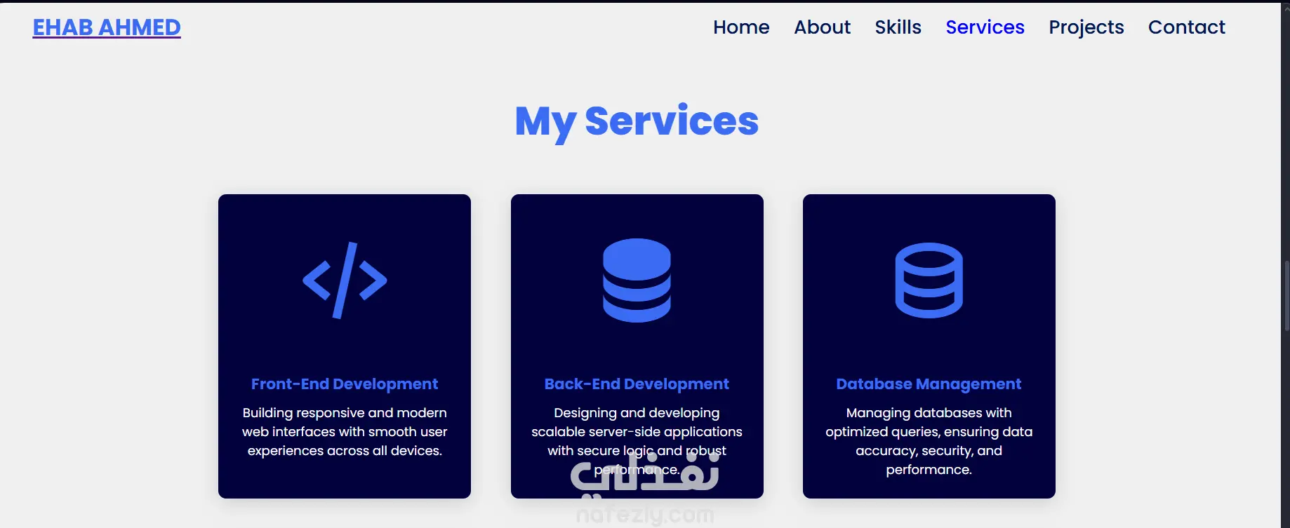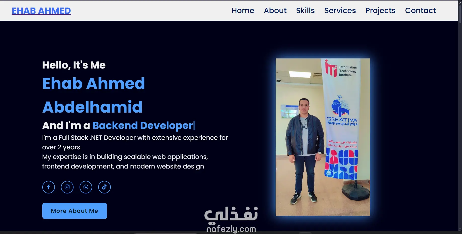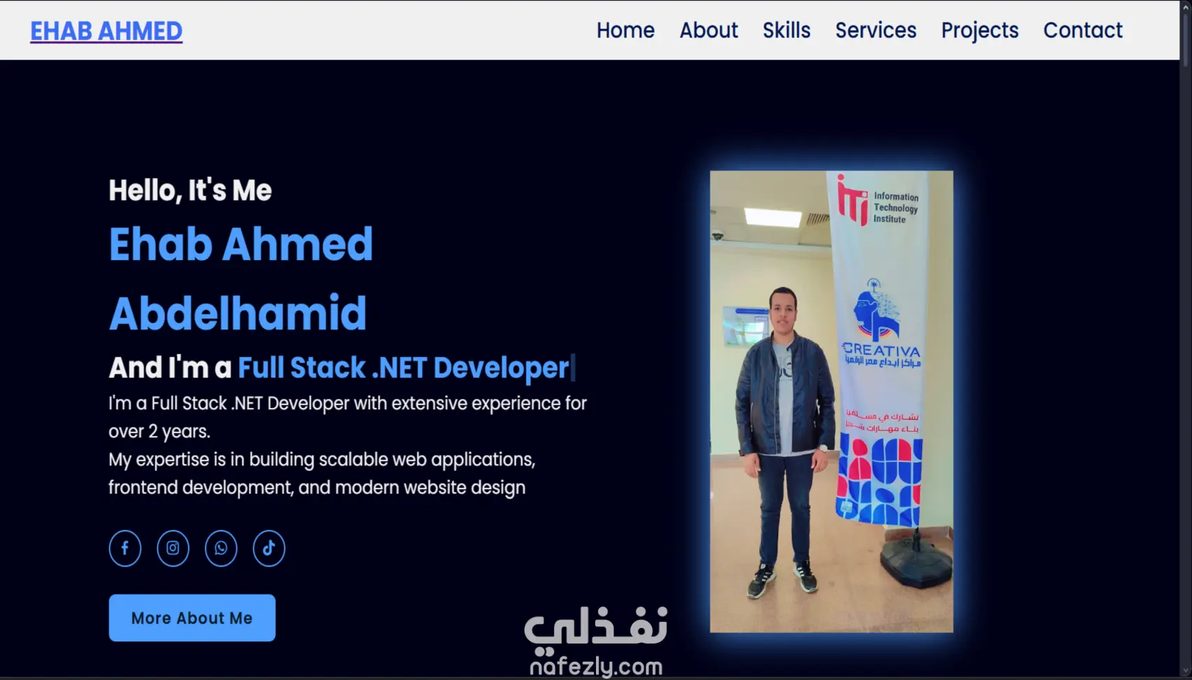 إضافة أيقونات وروابط مباشرة لحسابات التواصل الاجتماعي (مثل LinkedIn، GitHub، إلخ).
