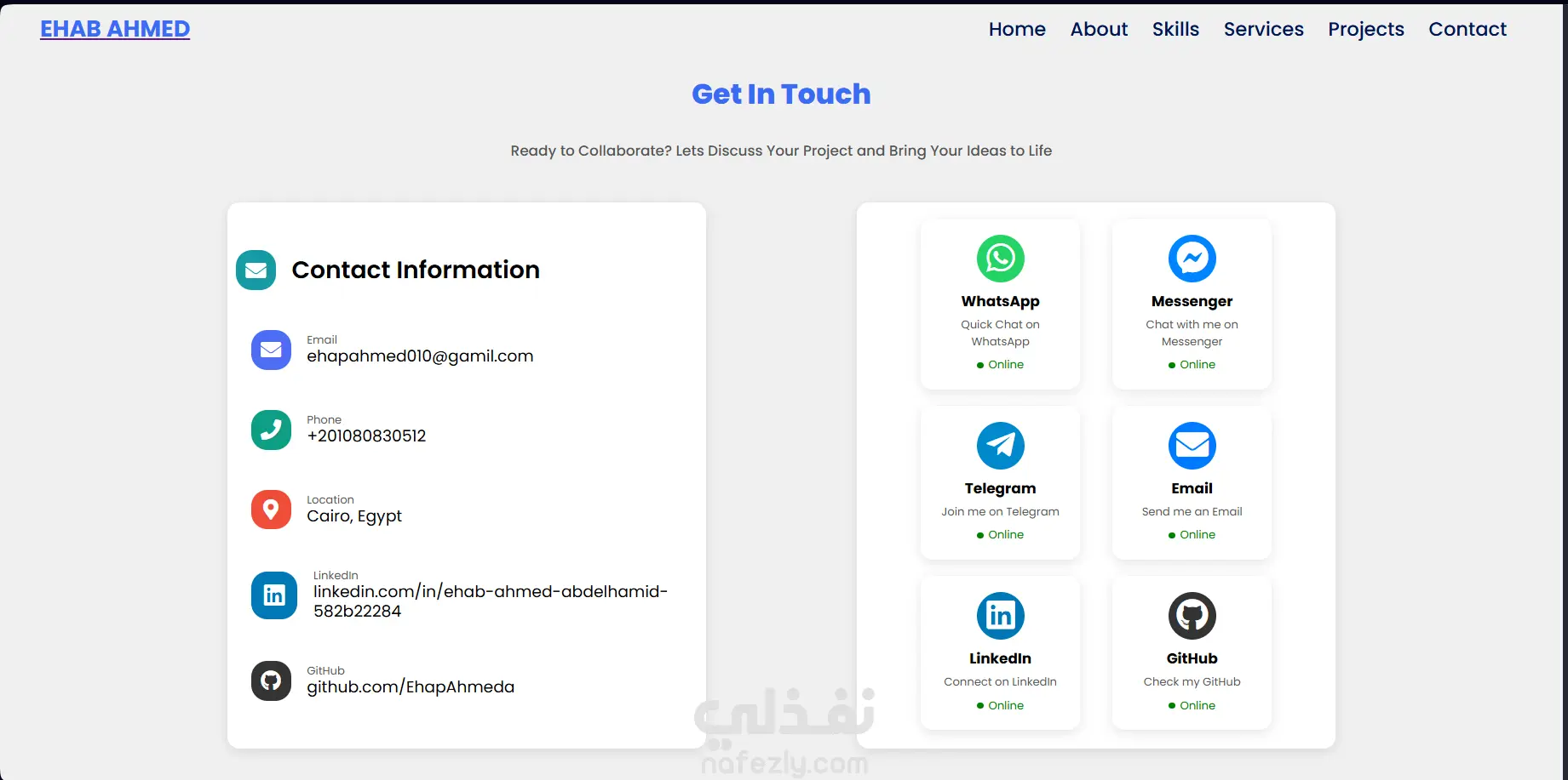 توفير نموذج تواصل سريع وفعال (Contact Form) يتم ربطه ببريدي الإلكتروني.