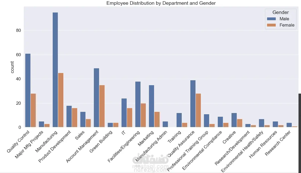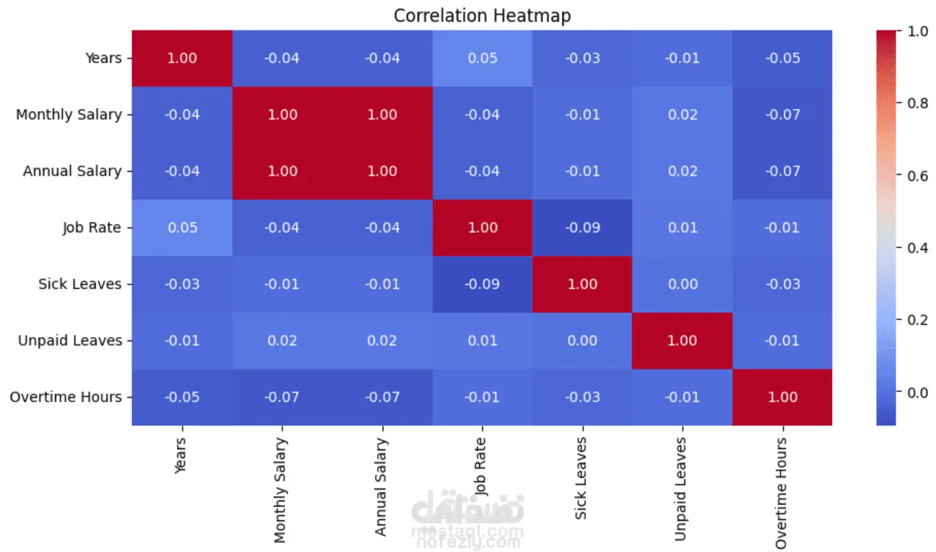 مشروع كامل لتحليل بيانات الموظفين بهدف مساعدة الإدارة على فهم الأداء الوظيفي، توزيع القوى العاملة، والعوامل المؤثرة على الرواتب والتقييم. خطوات العمل: تنظيف ومعالجة البيانات لضمان جودتها ودقتها. تحليل شامل لبيانات الموظفين (الحضور، الغياب، الرواتب، الإنتاجية). دراسة تأثير الغياب والراتب على معدل الأداء وتقييم الوظيفة. مقارنة الأقسام المختلفة لمعرفة: أي الأقسام تضم أكبر عدد من الموظفين. كيف يؤثر حجم القسم على الرواتب ومستويات الأداء. تحليل ديموغرافي يشمل: توزيع الموظفين حسب الجنس (ذكور/إناث). توزيعهم حسب الدولة أو موقع العمل. العلاقة بين هذه المتغيرات ومستوى الرواتب. إنشاء رسوم بيانية تعرض النتائج بشكل بصري وواضح. النتيجة: تم استخراج رؤى عملية مثل: تحديد الأقسام التي بها أكبر كثافة موظفين. توضيح كيف يؤثر الغياب والراتب على الأداء والتقييم. إبراز الفروق بين الرواتب حسب الجنس والدولة. هذه التحليلات ساعدت الإدارة على فهم البيانات بشكل أعمق واتخاذ قرارات مبنية على أدلة.