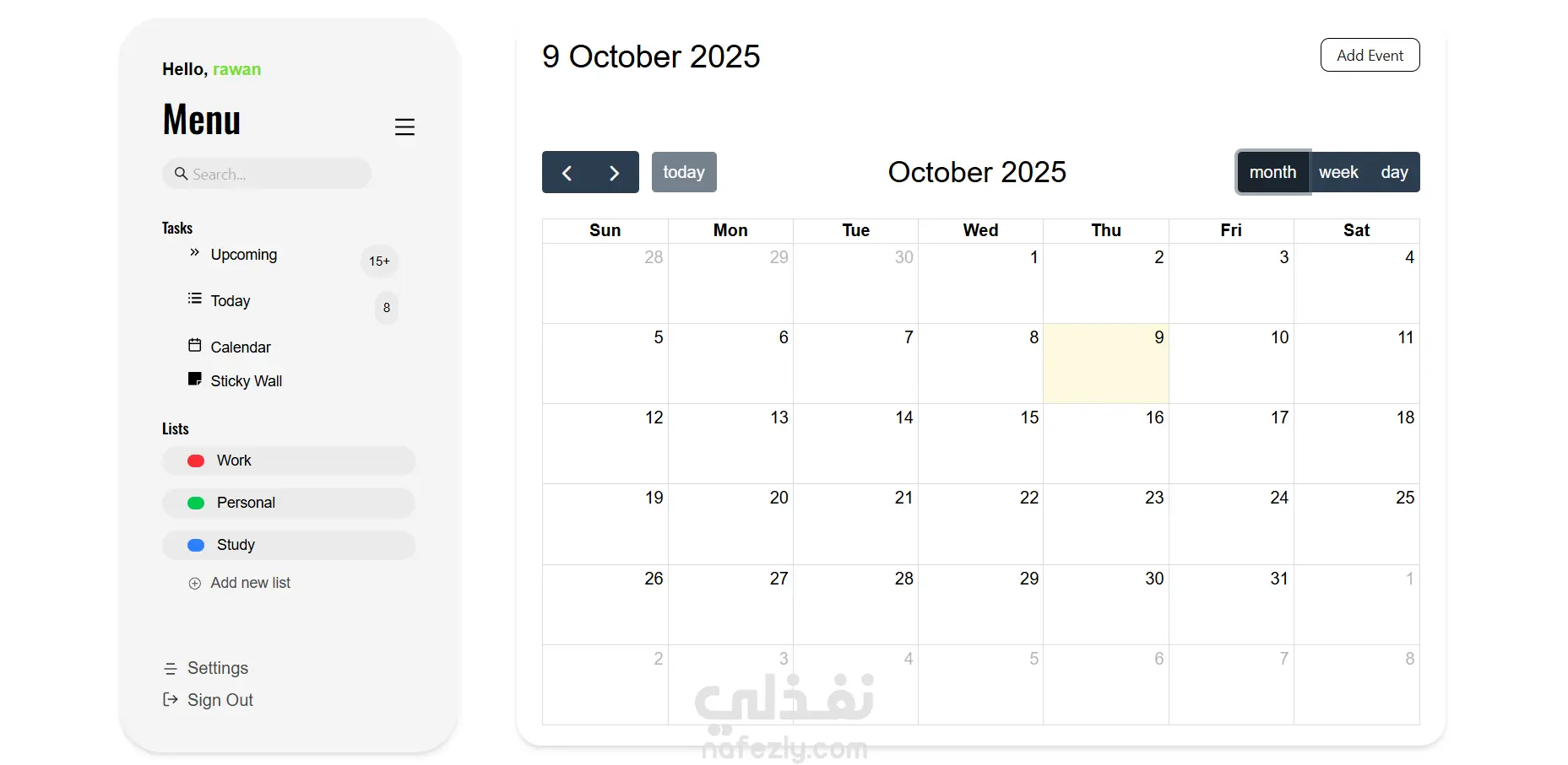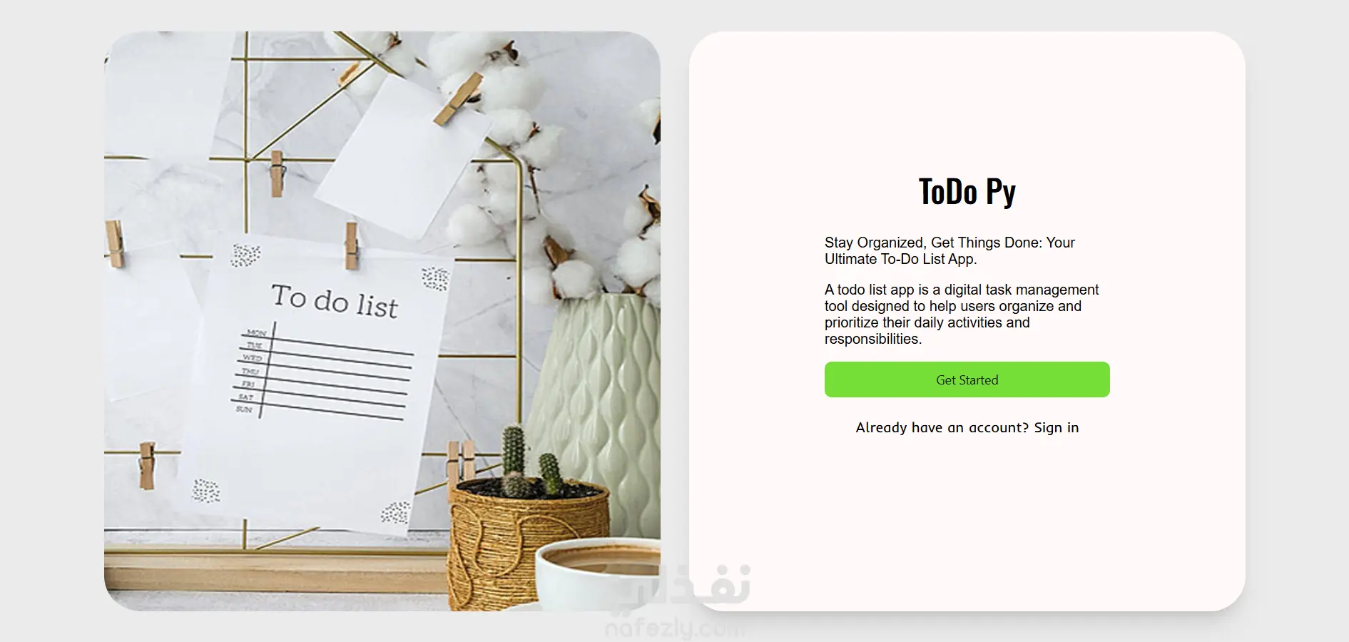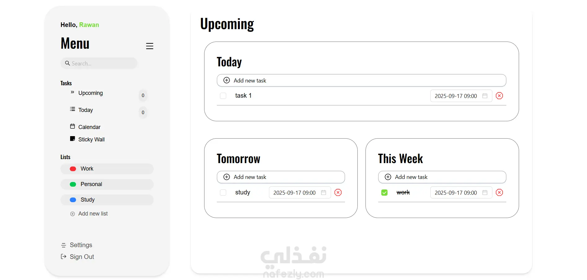 تطبيق حديث وإبداعي لإدارة المهام الشخصية تم بناؤه باستخدام React.js، يوفر واجهة مستخدم سلسة لإدارة المهام اليومية والأسبوعية. يتميز التطبيق بتصميم عصري واستجابة كاملة لأجهزة الكمبيوتر والهواتف المحمولة.