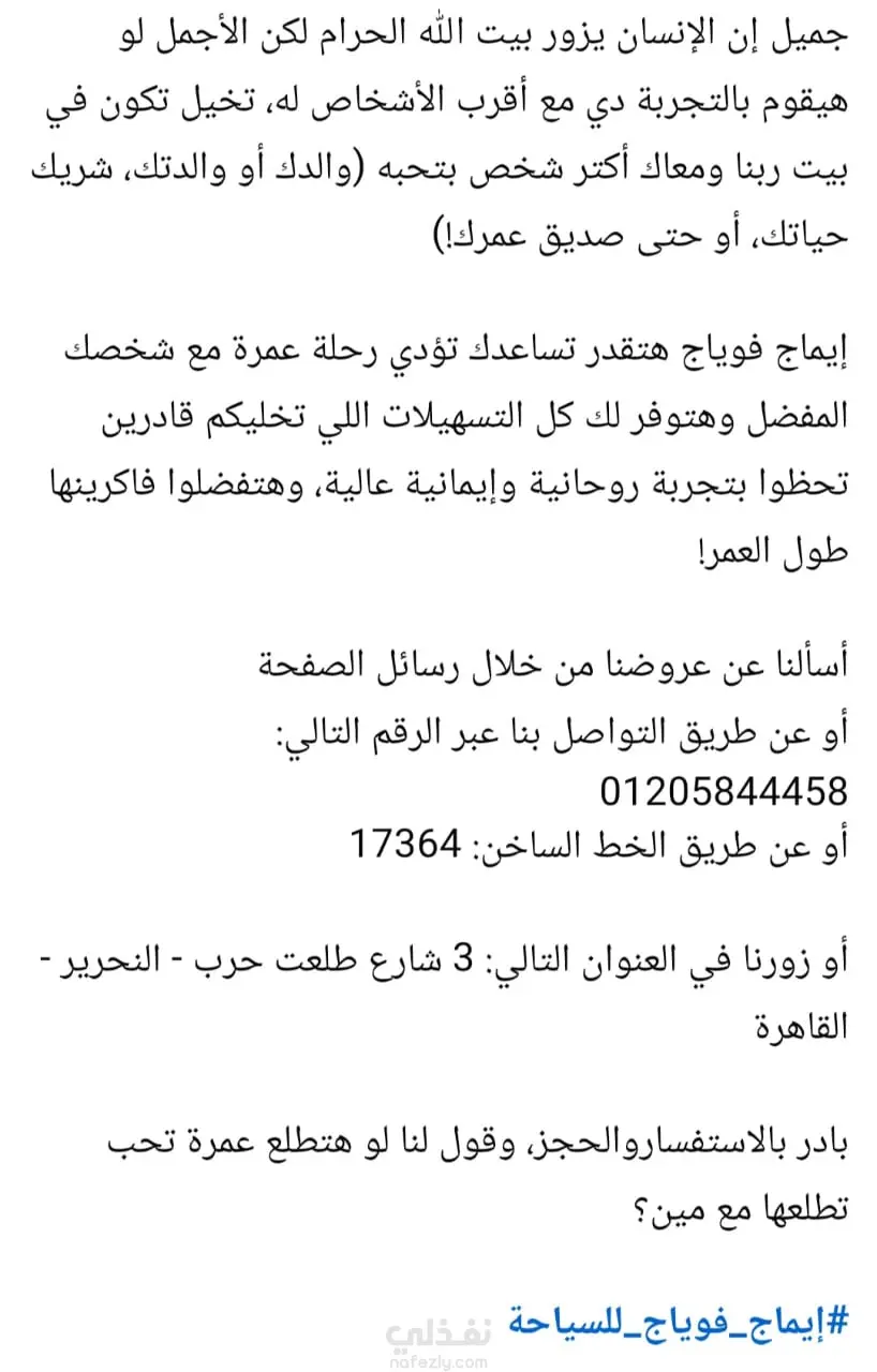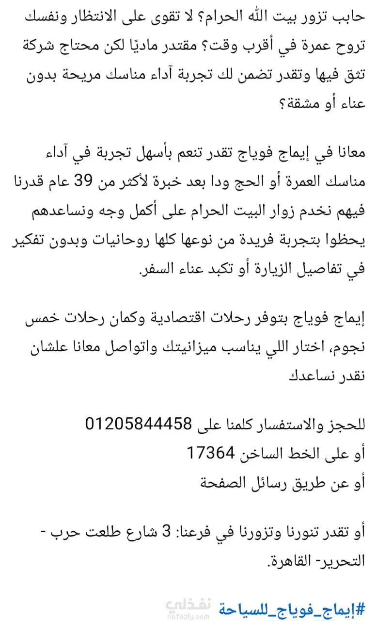 كتابة محتوى لمنشورات فيس بوك لعلامة تجارية متخصصة في رحلات الساحة الدينية (العمرة والحج)