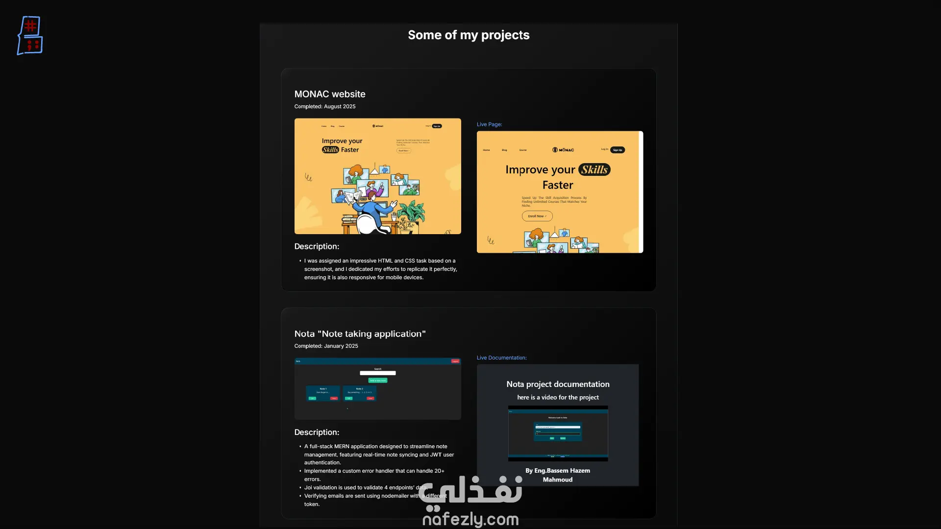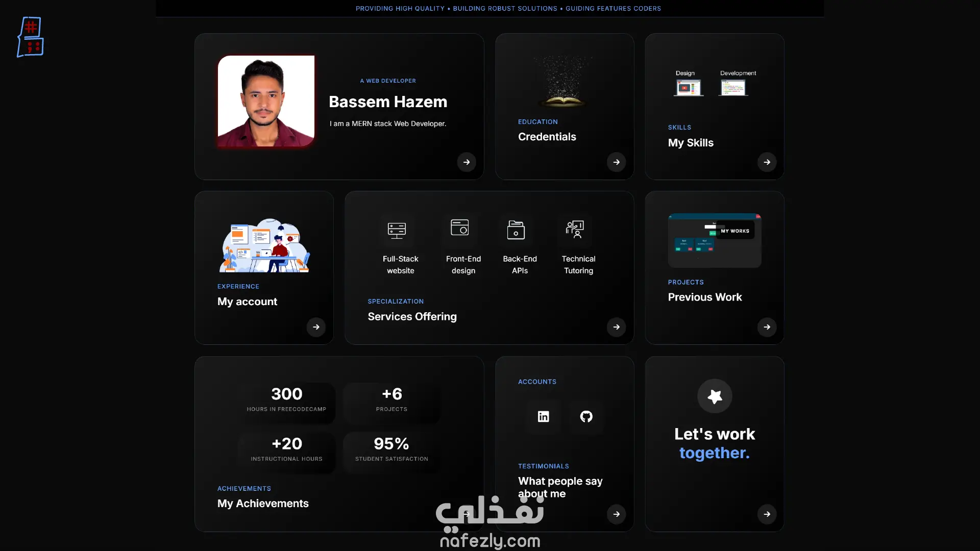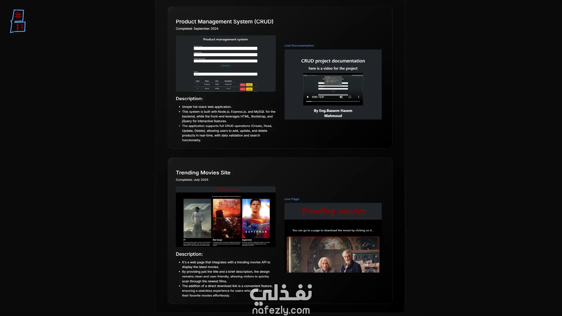 الموقع ليس مجرد صفحة لعرض المعلومات، بل هو تطبيق ويب متكامل يعكس القدرة على بناء حلول ويب شاملة من الواجهة الأمامية إلى الواجهة الخلفية.