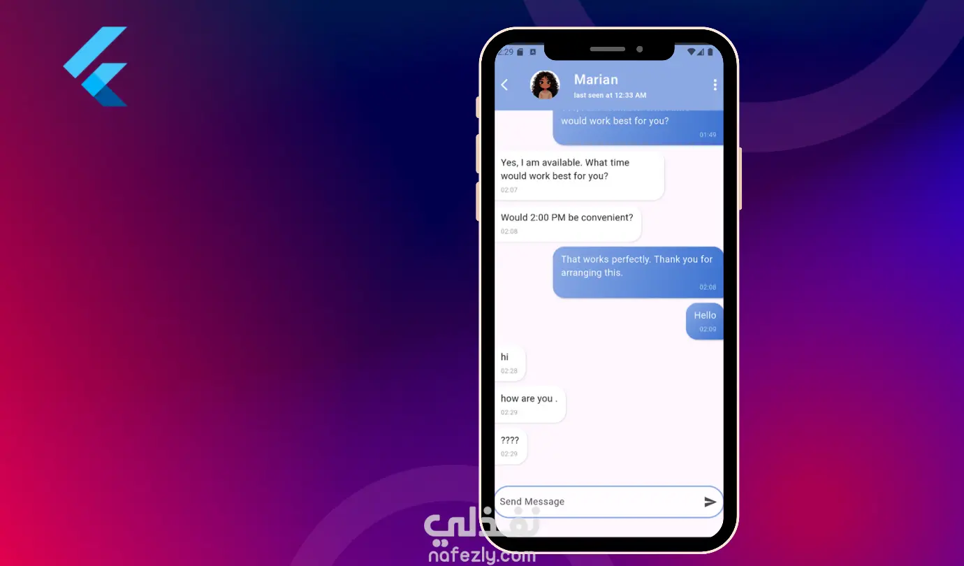تطبيق محادثة (Chat App) يسمح للمستخدمين بإرسال واستقبال الرسائل في الوقت الفعلي باستخدام Firebase Authentication لتسجيل الدخول وCloud Firestore لتخزين الرسائل بشكل آمن وفعّال. يتميز التطبيق بواجهة مستخدم بسيطة وسلسة وتجربة تواصل فورية بين المستخدمين.