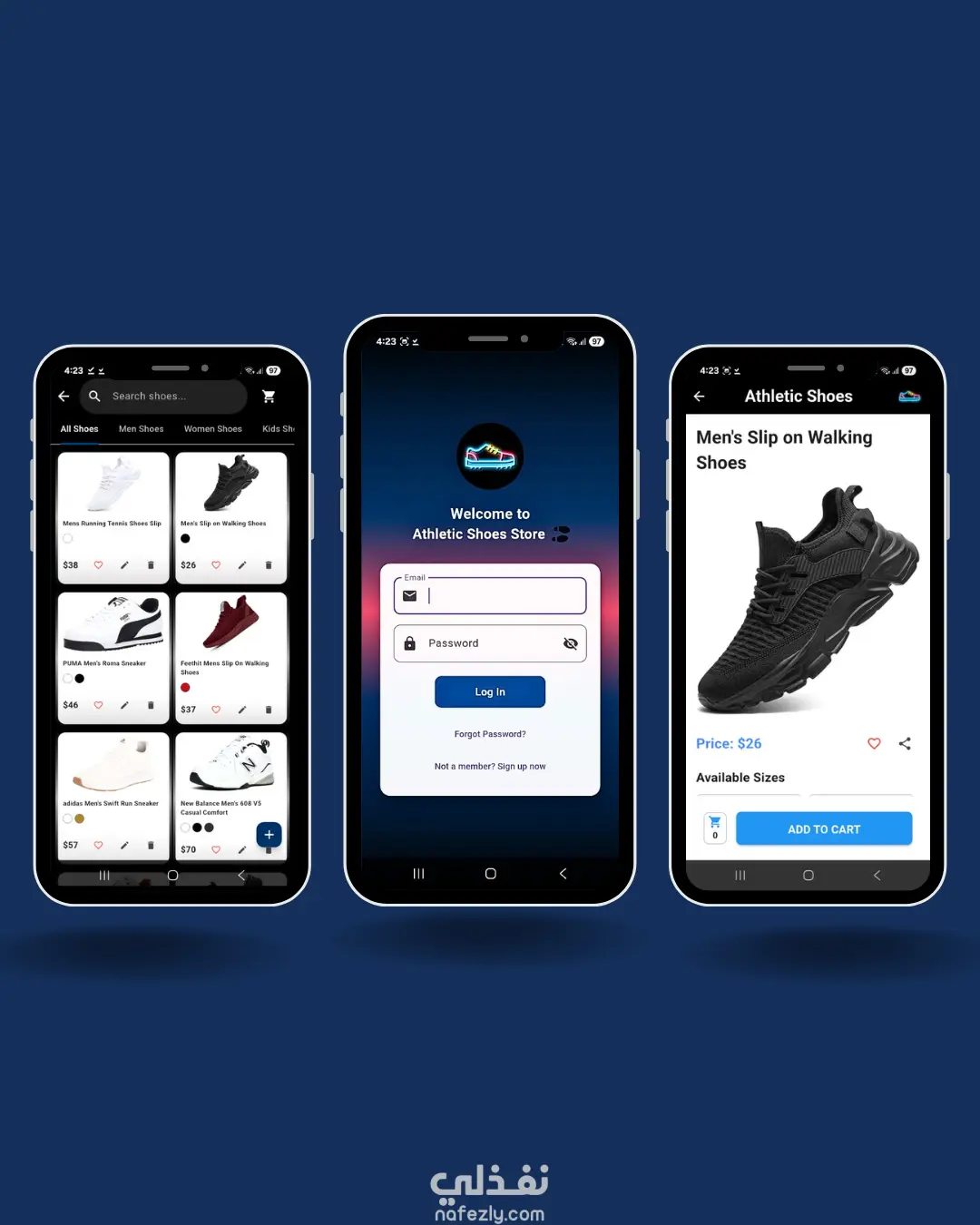 قمت بتطوير تطبيق موبايل للتجارة الإلكترونية متخصص في بيع الأحذية الرياضية باستخدام Flutter وDart.