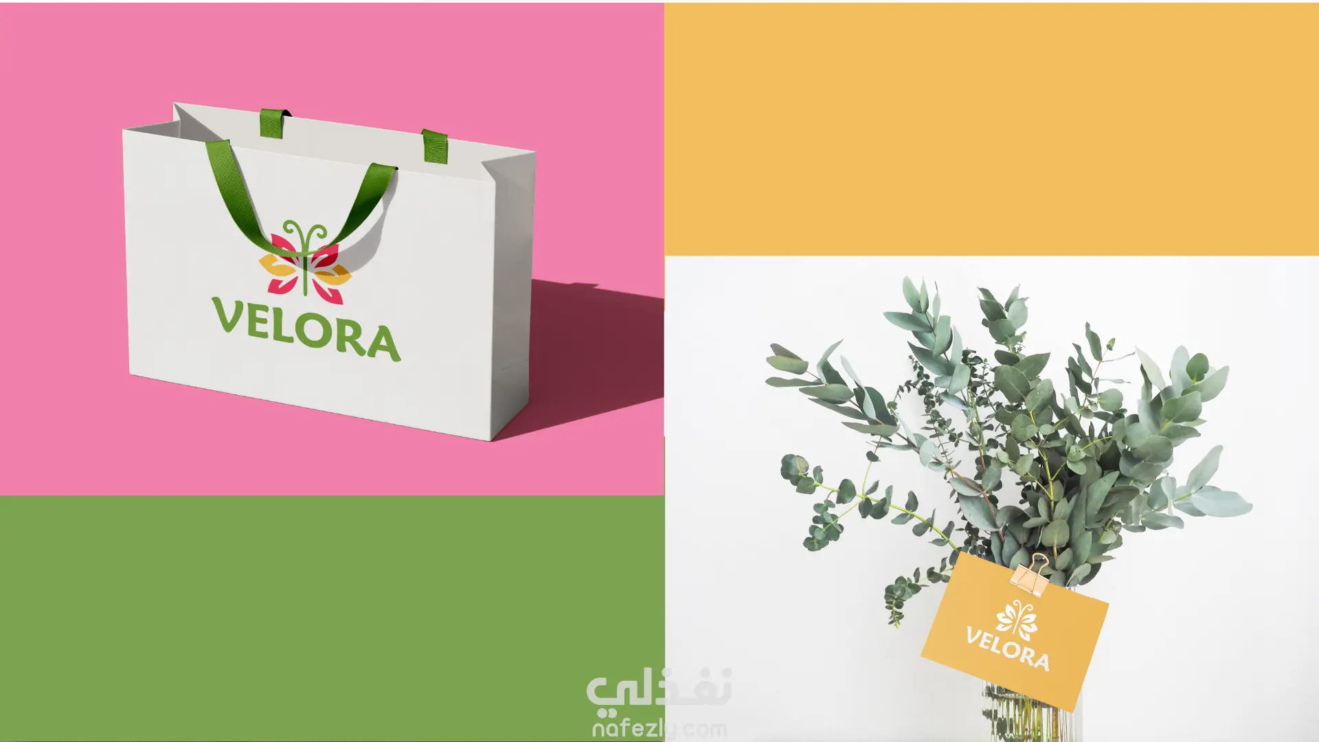 مشروع Velora هوية بصرية لمتجر ورود. تم تصميم الشعار من الصفر باستخدام Adobe Illustrator، حيث اعتمد على دمج زهرة اللوتس والفراشة في شكل متناسق يعبر عن النقاء والجمال والتحول. كما جرى اختيار لوحة ألوان مبهجة تضم الأخضر والوردي والأصفر لتعكس روح الطبيعة والحيوية، وتمنح العلامة التجارية طابعًا عصريًا وجذابًا. ولعرض الهوية في تطبيقات واقعية، استُخدم Adobe Photoshop مع موكابس جاهزة. على الأكياس طُبق الشعار لإبراز شكل الهوية في منتجات المتجر اليومية، بينما ظهرت البطاقات تحمل الشعار لتضيف لمسة مميزة إلى تفاصيل الهدايا. أما ورق التغليف فقد اعتمد على تكرار عناصر الشعار في تصميم متناسق يعكس العناية بالتفاصيل. كذلك جرى عرض الهوية على واجهة زجاجية للمتجر من خلال موكاب جاهز، مما أظهر كيف يمكن للشعار أن يعزز حضور العلامة التجارية في الواقع بشكل أنيق واحترافي. هذه التطبيقات المتنوعة تؤكد مرونة الهوية وقدرتها على التكيف مع مختلف الاستخدامات العملية.