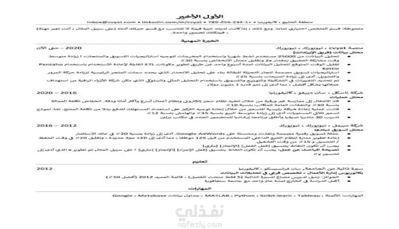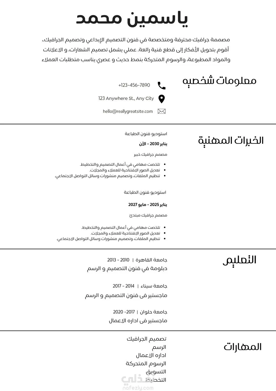 تصميم حديث ومتوافق مع نظام الـATS لضمان اجتياز فحص الشركات.
