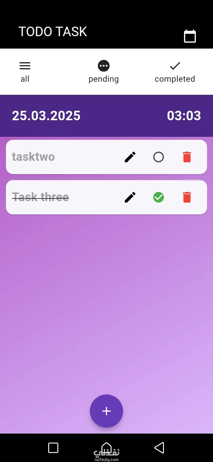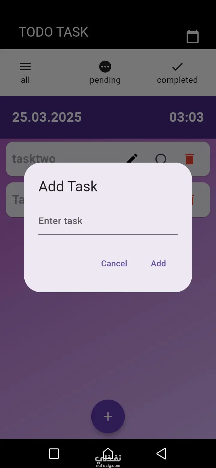 تطبيق To-Do بسيط وعملي لإدارة المهام اليومية، تم تطويره باستخدام Flutter مع Provider لإدارة الحالة بشكل فعال. يتيح للمستخدمين إضافة المهام، تحديث حالتها، وحذفها بطريقة سهلة وسريعة، مع واجهة استخدام أنيقة وسهلة التصفح.