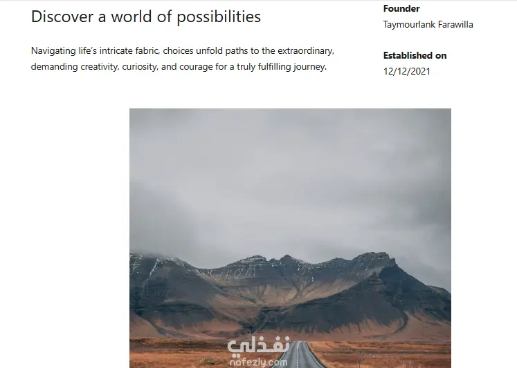 التقديم: - المواقع الالكترونية اصبح لا غنى عنها في كل مجريات حياتنا اليومية، فأينما تحتاج لخدمة تجد موقع الكتروني لتقديمها. - تصميم مواقع الانترنت باستخدام ووردبرس WordPress وإمكانياته الرائعة تعطي مجال واسع لانطلاق أفكارك الغنية للآفاق التي تناسب طموحاتك. - أبدأ معنا الآن في تصميم موقعك الالكتروني بما يعكس شخصيتك في التقدم بأعمالك لآفاق جديدة وعملاء أكثر. - لا تضيع الفرصة فكل ثانية يزداد المنافسون لك في السوق. - اغتنم الفرصة معنا لتحقيق آمالك الآن. المميزات: - العمل يمثل نموذج من مهارات تصميم المواقع. - إمكانية إضافة معرض صور متحرك Carousel لعرض الخدمات المتاحة. - الكثير من الامكانيات الأخرى الرائعة في انتظارك، فكل ما ترغب به يتحقق معنا بإذن الله في موقعك القادم.