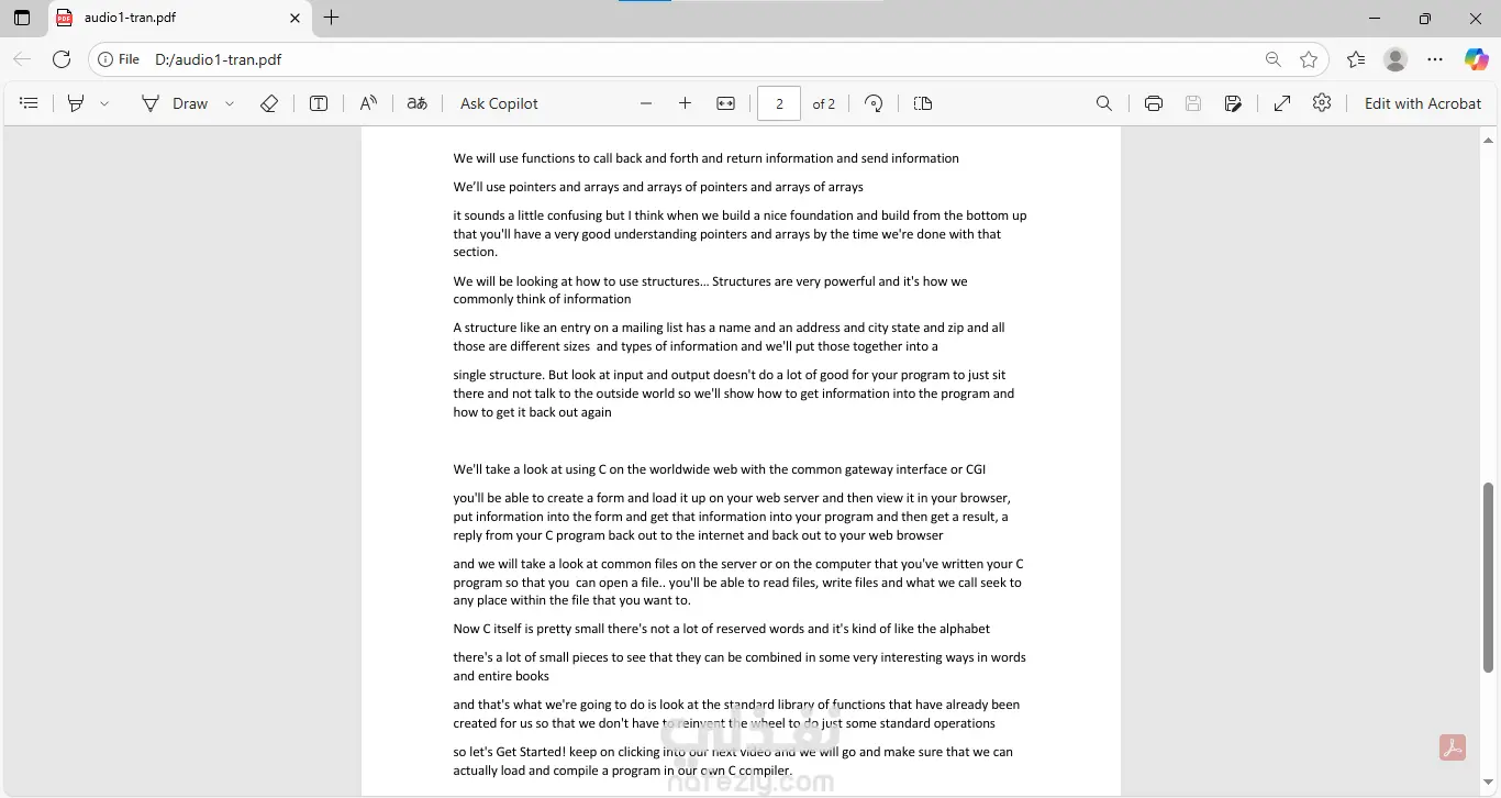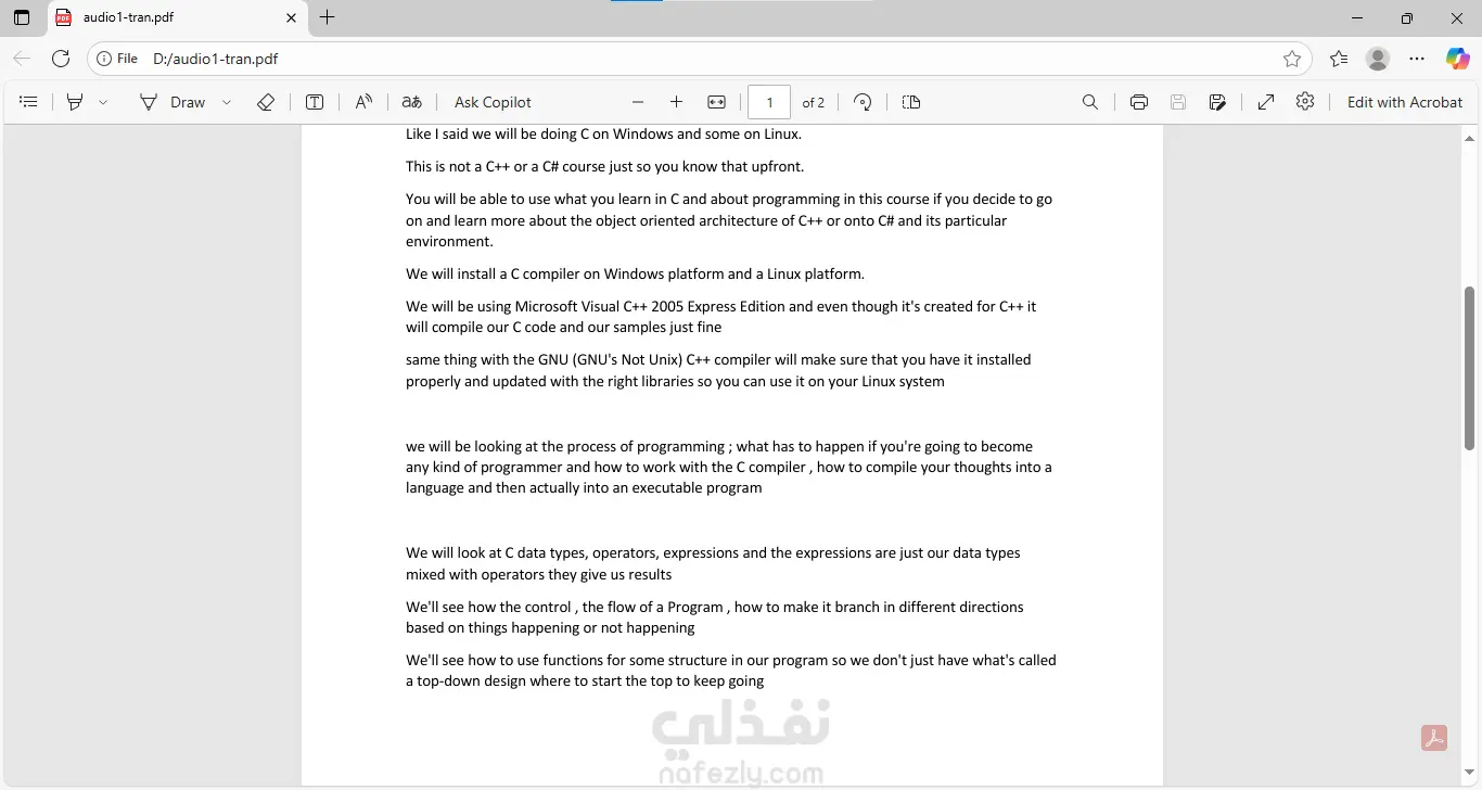 تفريغ المحتوى الصوتي أو المرئي إلى ملف نصي (Word / PDF) بجودة عالية، مع ضمان: الكتابة خالية من الأخطاء الإملائية. الحفاظ على ترتيب وتسلسل الكلام. إمكانية تقسيم النص إلى فقرات وعناوين عند الطلب. التعامل مع اللغة العربية أو الإنجليزية.