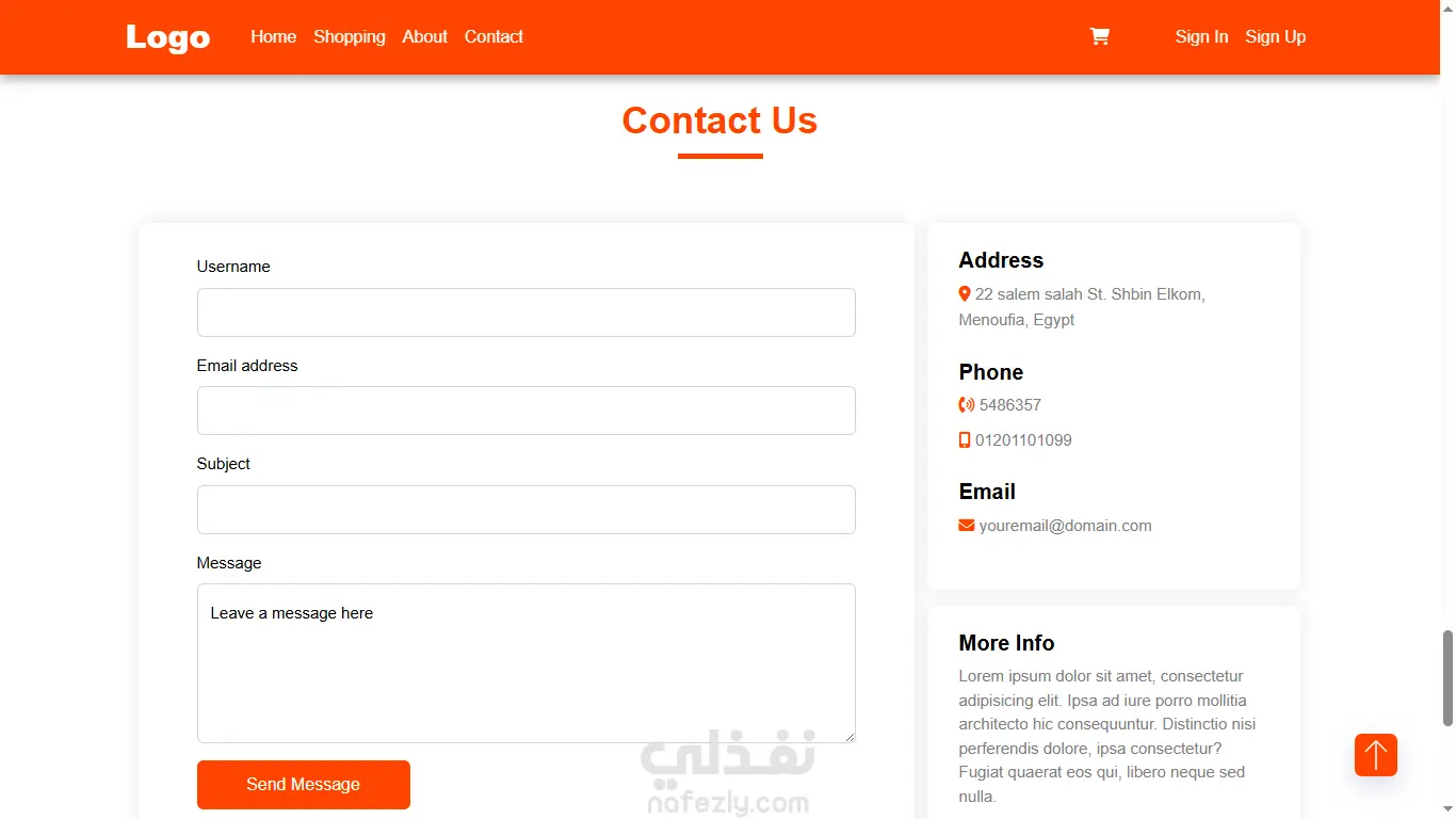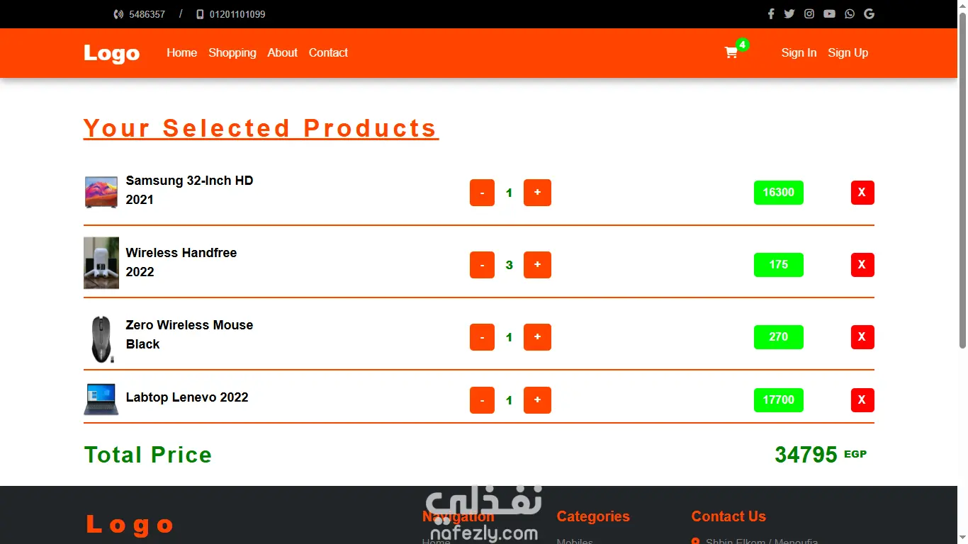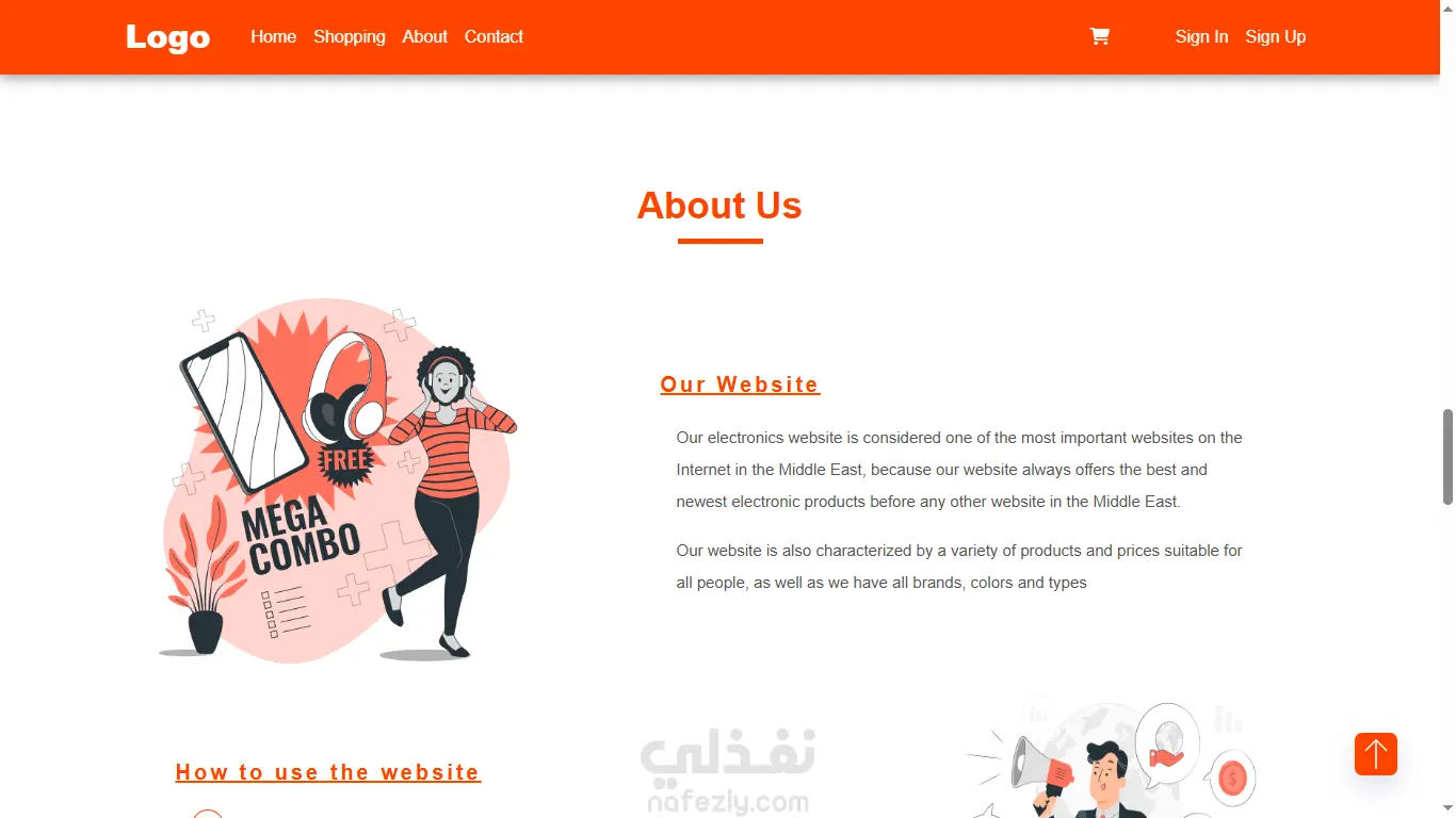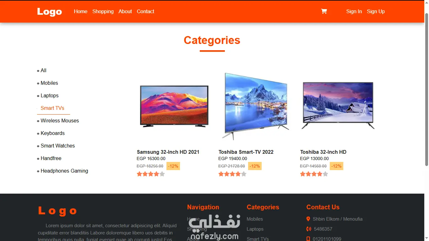 نوع العمل: موقع إلكتروني للتجارة الإلكترونية (E-commerce) لعرض وبيع المنتجات عبر الإنترنت، ضمن مشروع تخرج من كورس ITI 2022. الميزات: يتميز الموقع بواجهة مستخدم جذابة ومتجاوبة، إمكانية تصفح المنتجات، إضافة المنتجات إلى السلة، عرض تفاصيل المنتجات، والتنقل بين الصفحات بسهولة. طريقة التنفيذ: تم استخدام React لبناء واجهة المستخدم التفاعلية، Bootstrap 5 لتصميم العناصر بشكل متجاوب، دوري في المشروع: كنت مسؤولًا عن تطوير الواجهة الأمامية (Front-end) فقط، باستخدام React، Bootstrap 5، وSwiper لإضافة التفاعلات وحركة التمرير بين العناصر.