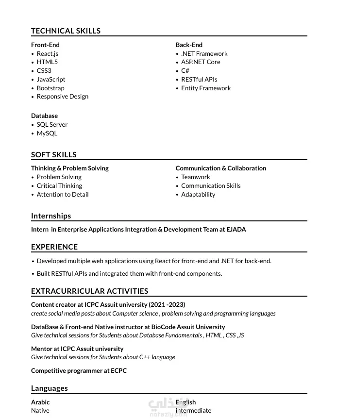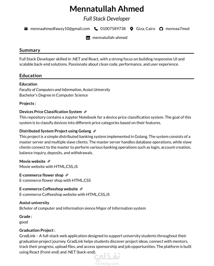 قمت بإعداد وتصميم سيرة ذاتية احترافية ومتوافقة مع نظام ATS لضمان ظهور المرشح ضمن أوائل النتائج في أنظمة التوظيف الإلكترونية. حرصت على تنظيم الأقسام بشكل جذاب وسهل القراءة، مع استخدام كلمات مفتاحية مناسبة لمجال الوظيفة. يشمل العمل: كتابة نبذة احترافية مميزة. تنسيق الخبرات العملية والتعليمية والدورات. إبراز المهارات التقنية والشخصية. تصميم أنيق من صفحة واحدة بصيغتي Word و PDF.