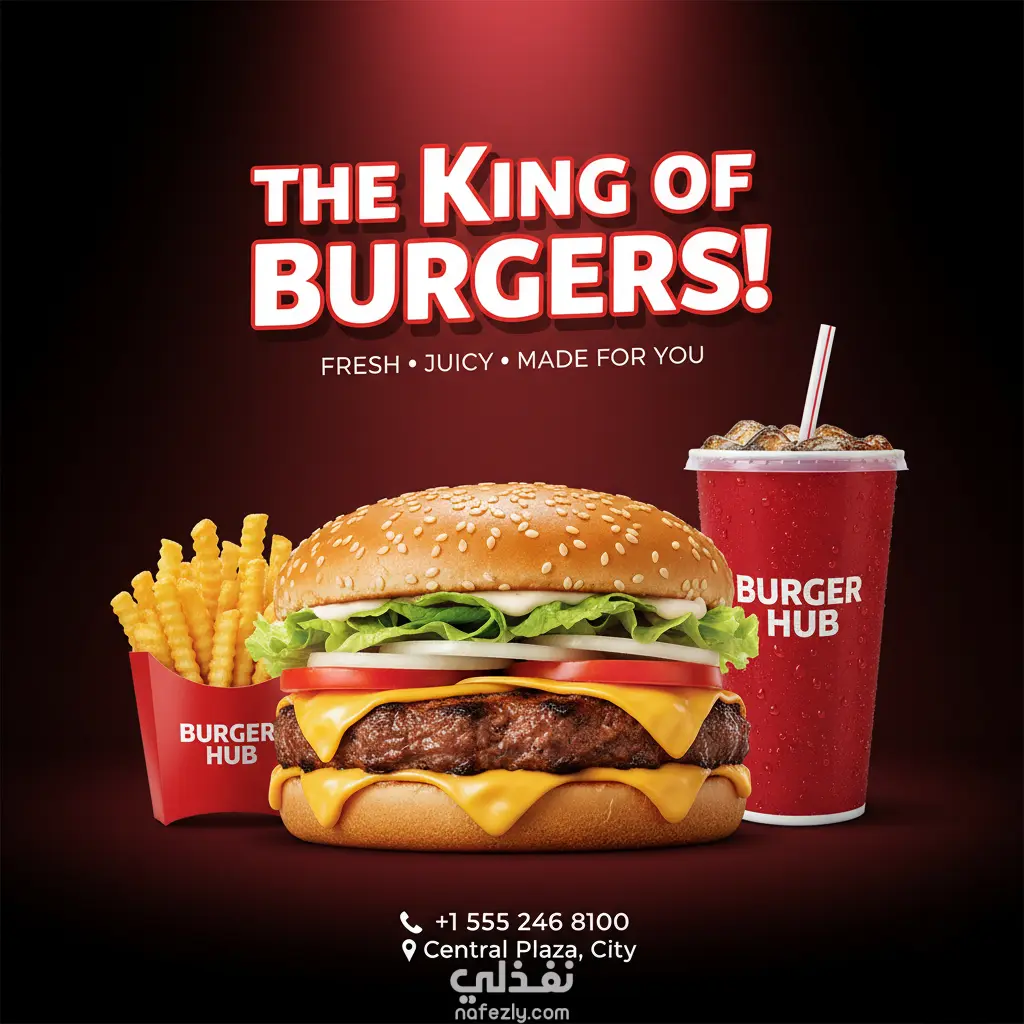 تصميم إعلان احترافي لمنتجات الطعام والمطاعم بأسلوب جذاب