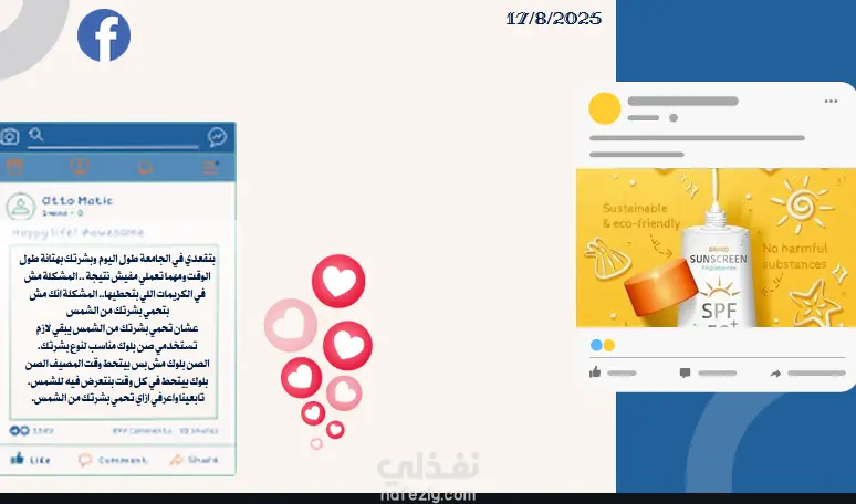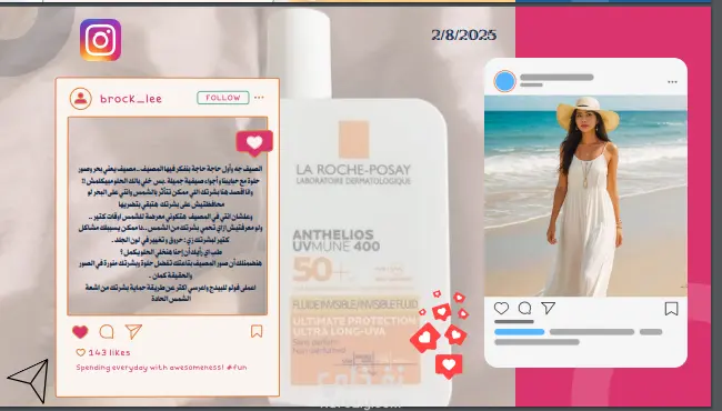 قمت بإعداد خطة محتوي شهرية كاملة لمنتج واقي شمس ( sun block ) بهدف رفع الوعى وزيادة التفاعل على صفحات التواصل الاجتماعي ( فيسبوك- انستجرام). تضمنت الخطة أفكار منشورات متنوعة ( توعوية- ترويجية- تفاعلية)، مع تحديد نوع المحتوي وتوقيت نشره.
