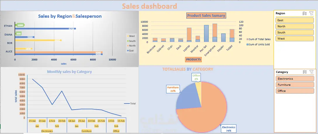 تصميم لوحة معلومات تفاعلية للمبيعات باستخدام Excel
