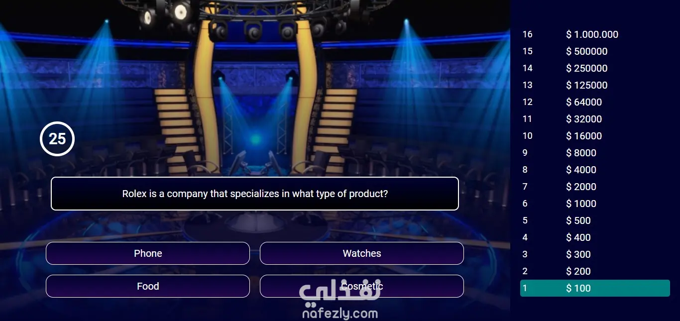 لعبة Who Wants to Be a Millionaire ؟ | تطوير بلغة React مع مؤثرات صوتية وتصميم تفاعلي