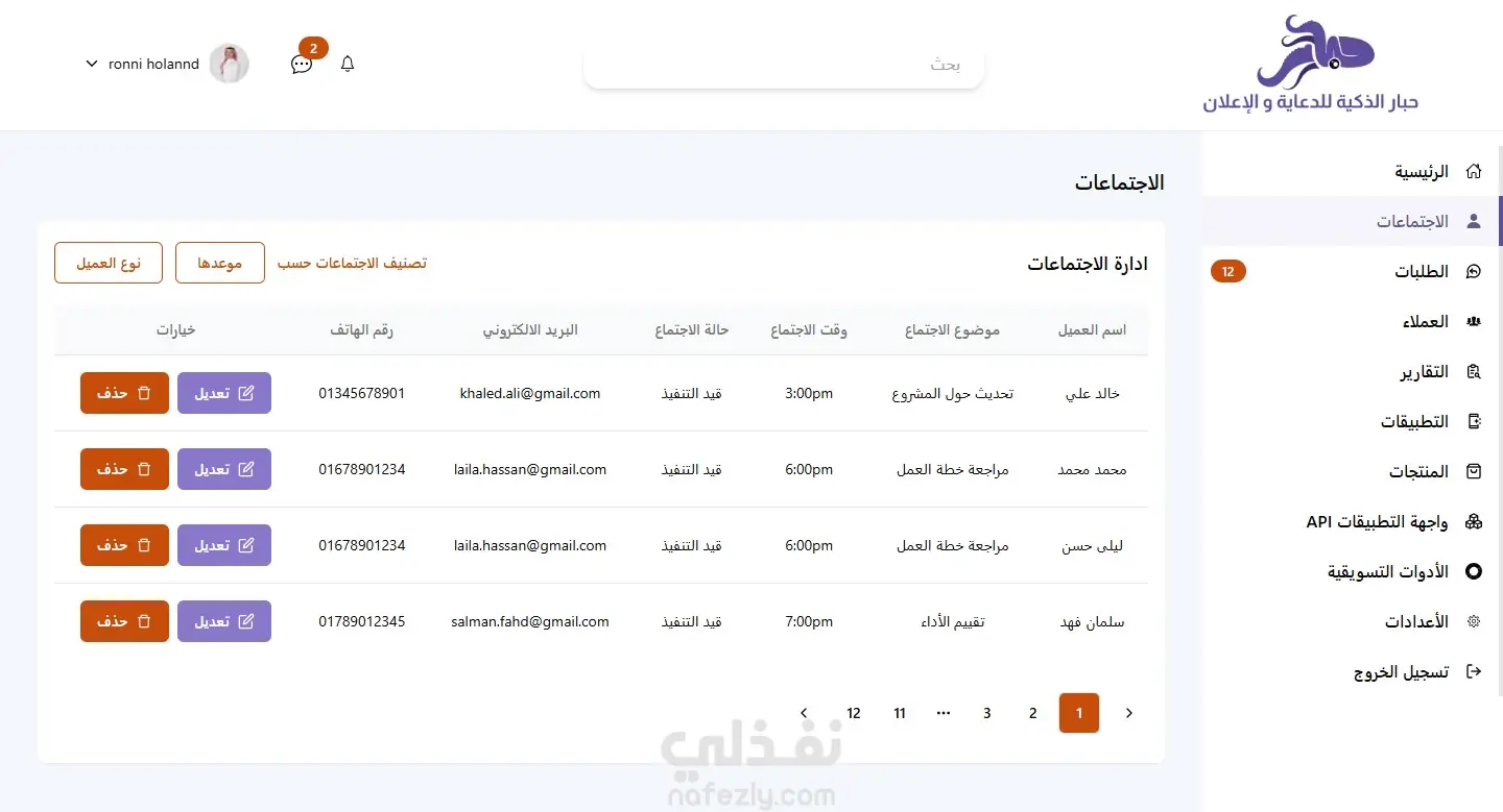 نظام إدارة أعمال متكامل - Next.js 15 | لوحة تحكم شاملة لإدارة المبيعات، الاجتماعات، والتقارير