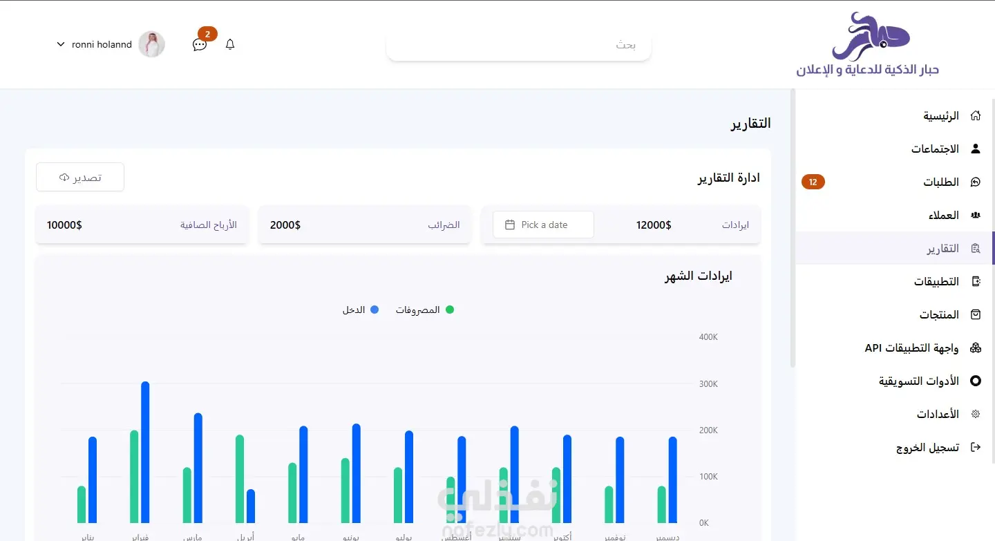 🌟 نظرة عامة قمت بتطوير نظام إدارة أعمال متكامل وشامل باستخدام Next.js 15 و React 19، يقدم لوحة تحكم احترافية لإدارة جميع جوانب العمل من مبيعات، اجتماعات، تقارير، وعملاء. النظام مصمم ليكون الحل الشامل للشركات والمؤسسات. 🎯 الوحدات الرئيسية للنظام 📊 لوحة التحكم الرئيسية - نظرة عامة شاملة على أداء العمل - إحصائيات حية للإيرادات والمبيعات - مقارنات مع العام الماضي بنسب مئوية - تتبع الطلبات (قيد التنفيذ - المنتهية) - مؤشرات أداء رئيسية (KPI) في وقت حقيقي 📅 نظام إدارة الاجتماعات - جدولة ومتابعة الاجتماعات - تتبع حالات الاجتماعات - إدارة معلومات التواصل (بريد إلكتروني، هواتف) - تصنيف وتنظيم الاجتماعات حسب النوع والأولوية 📈 نظام التقارير المتقدم - تقارير مالية شاملة (إيرادات، مصروفات، أرباح) - تحليلات بيانية متقدمة باستخدام Recharts - تقارير أداء للعمليات والمبيعات - تصدير بيانات بتنسيقات متعددة 🔌 نظام واجهات البرمجة (API) - إدارة التطبيقات المتكاملة - مراقبة واستخدام الـ Webhooks - إدارة نقاط الاتصال (Endpoints) - أدوات المطورين المتكاملة 💻 التقنيات المتقدمة المستخدمة 🏗️ Framework & Libraries - Next.js 15 - أحدث إصدار مع App Router - React 19 - مع أحدث الميزات والتحسينات - TypeScript - لنوعية وكفاءة أعلى للكود 🎨 UI Components & Styling - Radix UI - مكونات واجهة مستخدم متقدمة - Tailwind CSS - تصميم سريع ومتجاوب - Lucide React - مكتبة أيقونات شاملة - Recharts - مكتبة الرسوم البيانية المتقدمة 🔧 Advanced Features - Date-fns - إدارة التواريخ والمواعيد - React Day Picker - منتقي التواريخ التفاعلي - Class Variance Authority - إدارة classes ديناميكية - Tailwind Merge & Animate - تحسينات التصميم ⚡ المميزات التقنية المتقدمة - أداء فائق بفضل Next.js 15 و React 19 - SEO مُحسّن مع Server-Side Rendering - تجربة مستخدم استثنائية مع تحميل فوري - كود نظيف ومنظم قابل للصيانة والتطوير - تصميم متجاوب يعمل على جميع الأجهزة - نظام مكونات متكامل وسهل التطوير 🏢 المجالات التطبيقية - شركات SaaS - أنظمة البرمجيات كخدمة - منصات E-commerce - إدارة المتاجر الإلكترونية - شركات الخدمات - إدارة العمليات والعملاء - الشركات الناشئة - حل إدارة متكامل وشامل