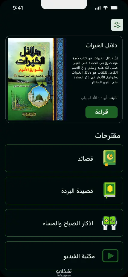يتيح التطبيق للمستخدمين تصفح الكتب، قراءتها، وحفظ المفضلة بسهولة، مع خيارات تخصيص مثل حجم الخط، ووضع القراءة الليلي.