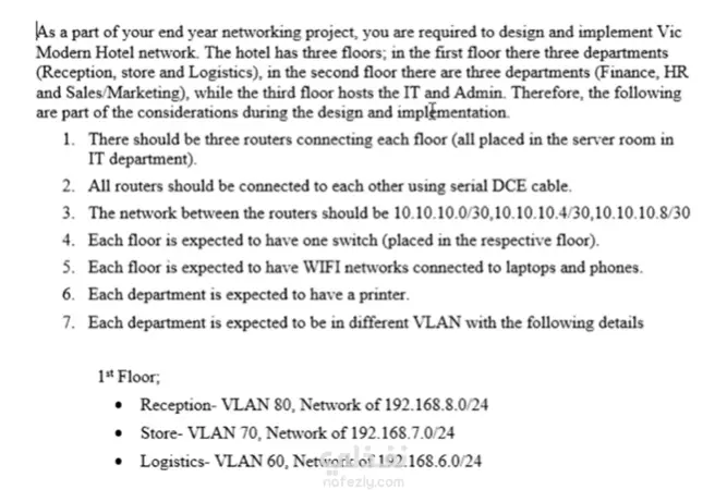 Modern Hotel Network design , Hotel has 3 floors and 3 departments in every floor.