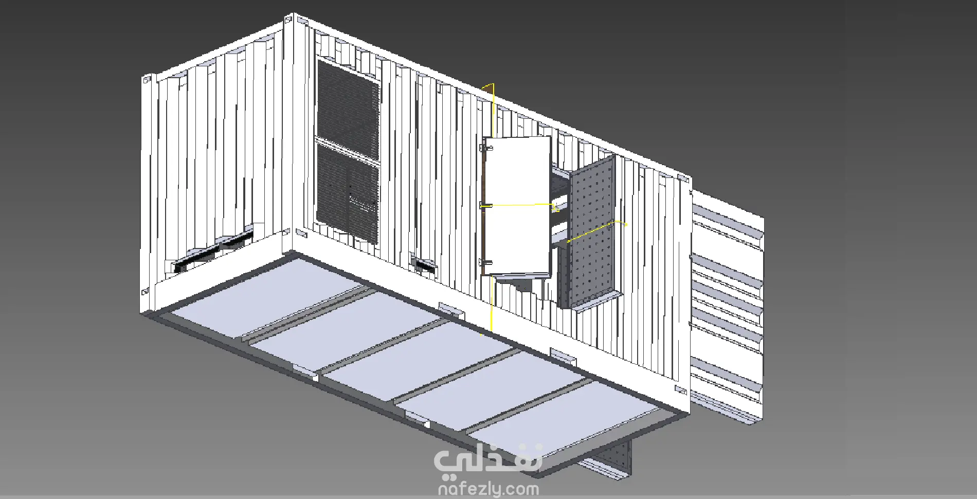 تم تنفيذ هذا التصميم الهندسي للكابينة بهدف تأمين المولد الكهربائي داخل هيكل قوي وآمن، مع ضمان سهولة النقل من خلال نظام رفع مصمم بعناية لتحقيق السلامة الهيكلية و يهدف أيضا لخفض الضوضاء المحيطة الناتجة عن تشغيل المولد ولضبط درجة الحرارة الداخلية لضمان كفاءة تشغيل عالية وثابتة حتى في الظروف البيئية القاسية. الكابينة مزودة بفتحات تهوية قابلة للتعديل (Adjustable Louvres) تعمل على تنظيم تدفق الهواء بشكل ذكي حسب درجة الحرارة المحيطة، مما يساهم في الحفاظ على حرارة تشغيل مثالية داخل الكابينة. بالإضافة إلى ذلك، يساهم التصميم في تقليل الضوضاء الصادرة عن المولد بشكل فعّال، مما يجعله مناسبًا للاستخدام في البيئات السكنية أو التجارية التي تتطلب مستويات منخفضة من الضجيج. الميزات: عزل صوتي وحراري متكامل هيكل قوي وآمن مع تصميم مخصص للرفع نظام تهوية ذكي قابل للتعديل