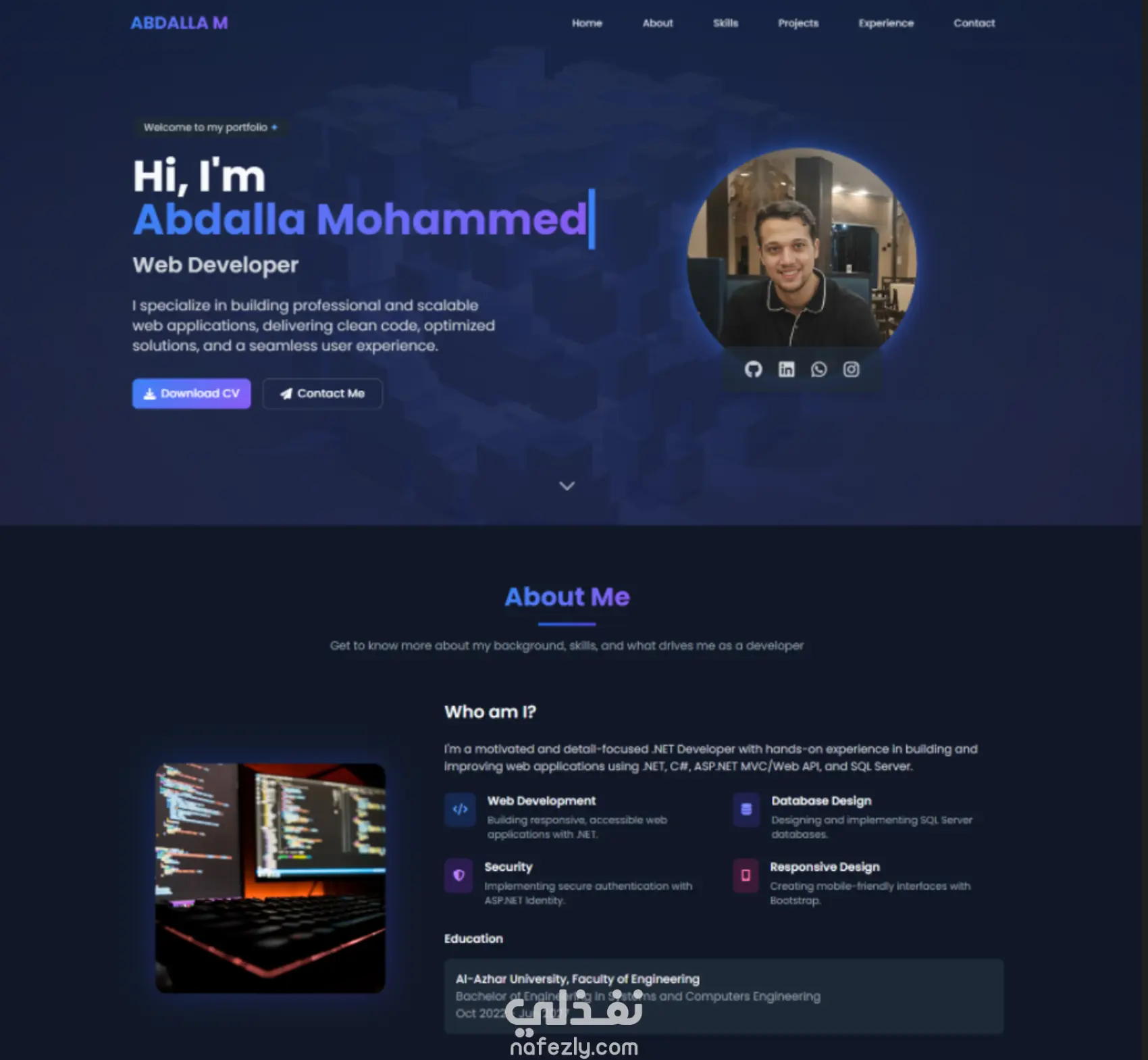 تصميم وتنفيذ بورتفوليو شخصي احترافي (Personal Portfolio Website)
