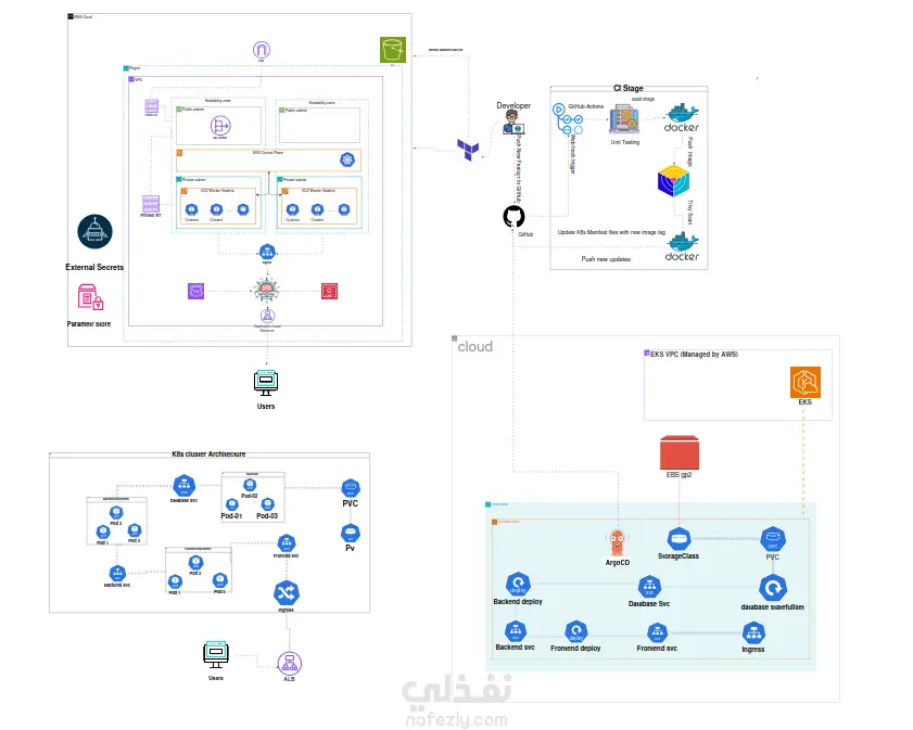 It is an end-to-end CI/CD pipeline for the Islamic App, combining modern DevOps practices with cloud-native technologies. The pipeline automates the entire software delivery lifecycle from code commit to production deployment using GitHub Actions, Terraform, Kubernetes, and ArgoCD.