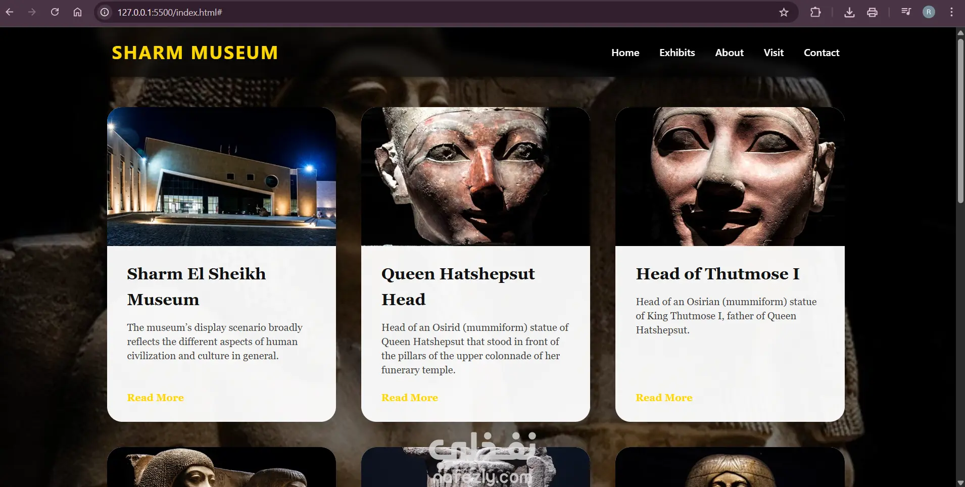 هذا المشروع عبارة عن تصميم صفحة هبوط (Landing Page) لمتحف شرم الشيخ، تهدف إلى عرض معلومات جذابة عن المتحف وتشجيع الزوار على الحضور والاستكشاف.