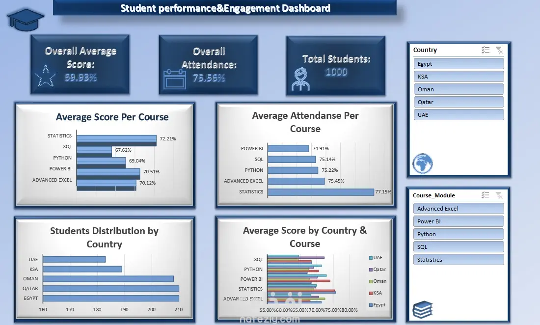 قمت بتصميم لوحة بيانات تفاعلية باستخدام Excel لتحويل بيانات الطلاب الخام إلى رؤى واضحة تساعد في اتخاذ القرار. بدأت بتنظيف وترتيب البيانات عبر Power Query، ثم أجريت تحليلاً شاملاً باستخدام Pivot Tables لاستخراج مؤشرات الأداء الأساسية مثل متوسط الدرجات، نسب الحضور، وأفضل الطلاب أداءً. هدفها مساعدة الإدارة الأكاديمية على تحديد المواد الضعيفة، ومتابعة ارتباط الحضور بالأداء، والتعرف على الطلاب المتفوقين ،مما يدعم القرارات المبنية على البيانات لتحسين جودة التعليم. أبرز الإنجازات: -تنظيف البيانات وتوحيد التنسيقات. -إنشاء مؤشرات أداء (KPIs) ولوحات مرئية تفاعلية سهلة القراءة. -تحليل العلاقة بين الحضور والنتائج لاكتشاف فرص التطوير. -تصميم لوحة احترافية تتيح استعراض الأداء العام في لمحة. الأدوات المستخدمة: Excel – Power Query – Pivot Tables – Charts – Slicers