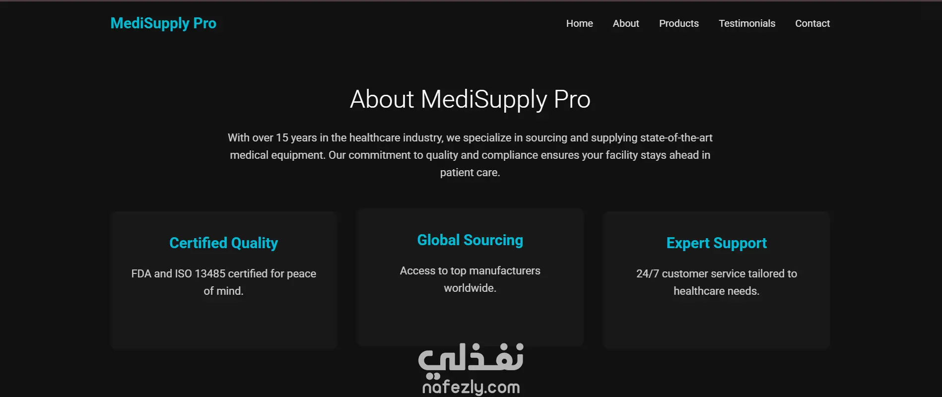 م تصميم وتطوير موقع إلكتروني يعرض منتجات المستلزمات الطبية بطريقة احترافية وسهلة التصفح، بهدف مساعدة المستخدمين في استكشاف الأجهزة والمعدات الطبية المتوفرة وطلبها بسرعة.