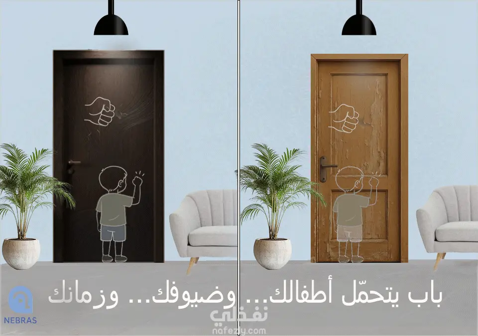 الديزاين يوضح جوده وصلابه الباب والجوده العاليه مقارنه ب الابواب العاديه