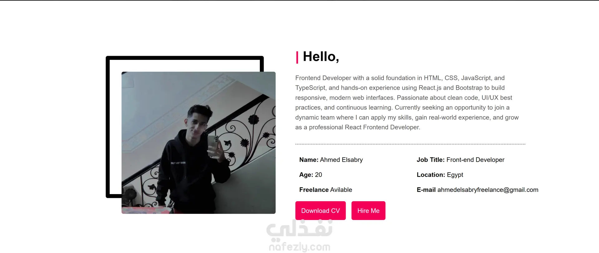 موقع بورتفوليو شخصي لعرض الأعمال والمهارات كمطور واجهات أمامية. تم تصميمه باستخدام HTML, CSS, JavaScript, مع Bootstrap لواجهة متجاوبة وأنيقة. يحتوي على أقسام للتعريف الشخصي، عرض المشاريع، المهارات، ووسائل التواصل، بهدف إبراز الخبرة بطريقة احترافية وسهلة الاستخدام