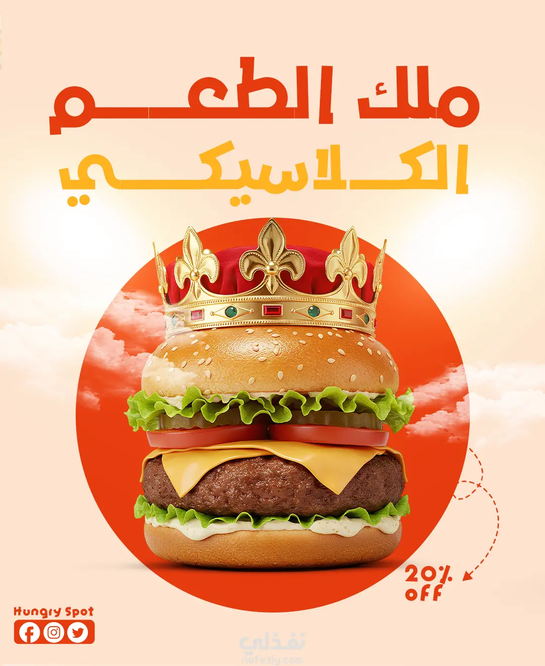 تصميم سوشيال ميديا لمطعم اكل سريع