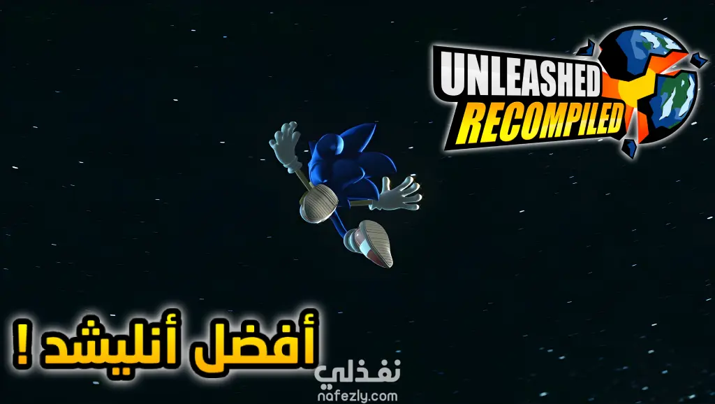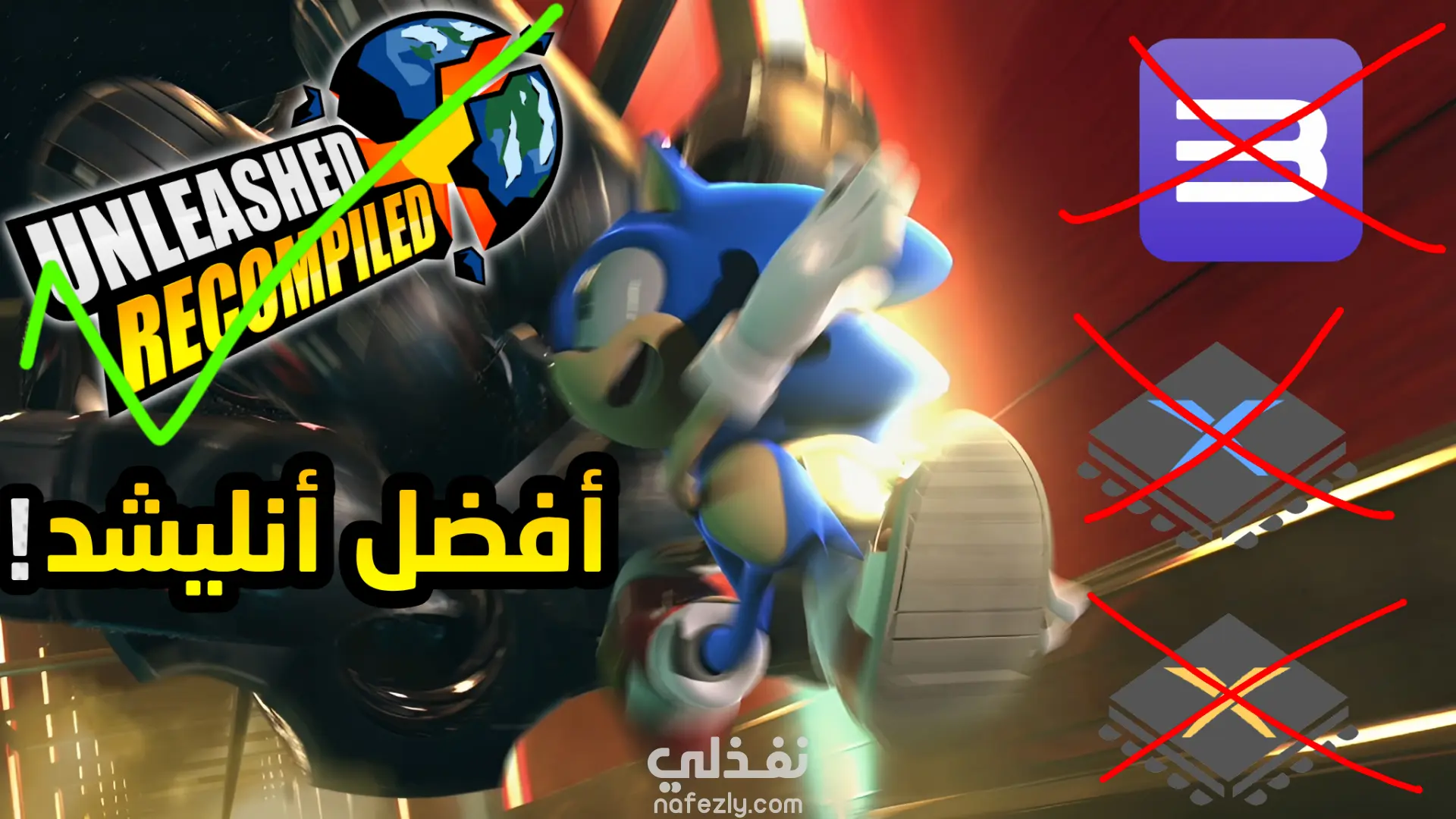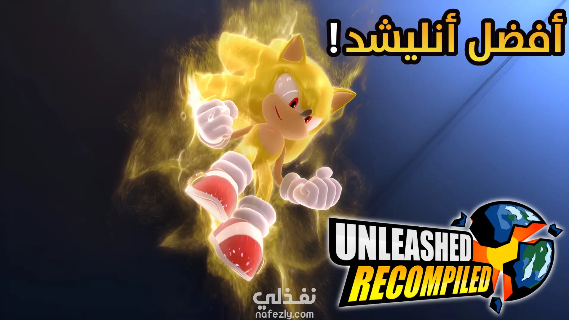 المحتوى: تركز الصور المصغرة على إظهار جودة اللعبة (Sonic Unleashed) ومشروع Sonic Unleashed Recompiled، وتستخدم نصوصاً عربية واضحة وجذابة (مثل : "أفضل أنليشد!") لجمهور الألعاب العربي.