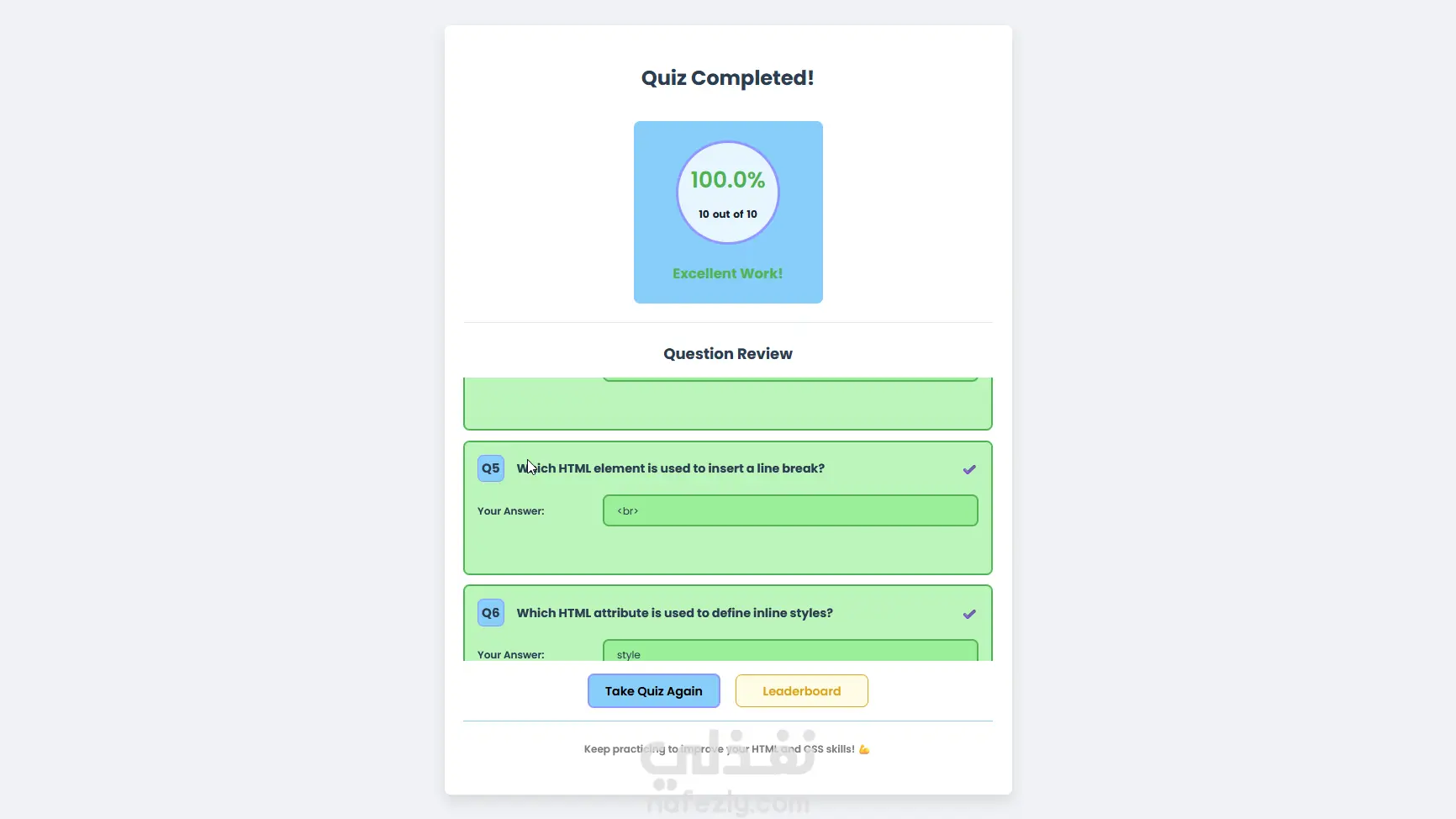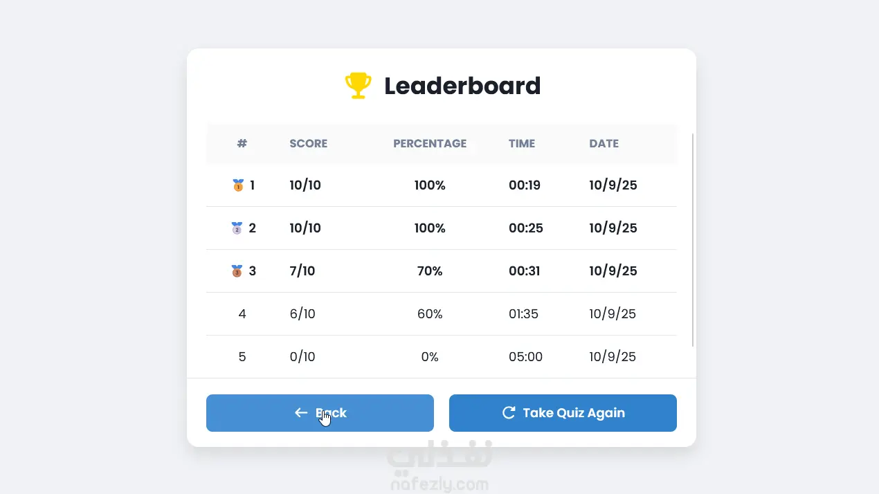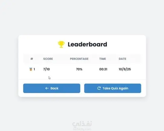 تطبيق اختبارات تفاعلي متكامل باستخدام React