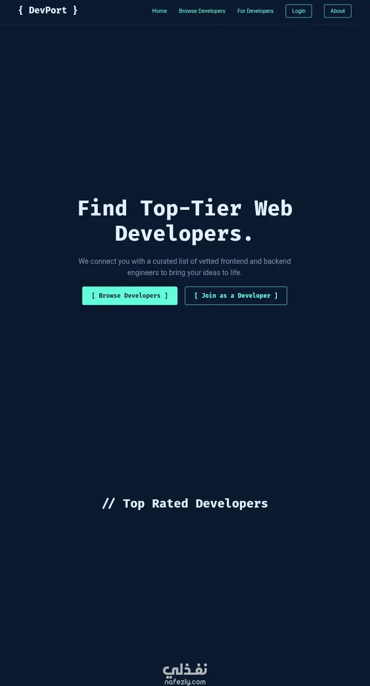 Designed a clear hero section with the main call-to-action text “Find Top-Tier Web Developers” to immediately attract users’ attention.