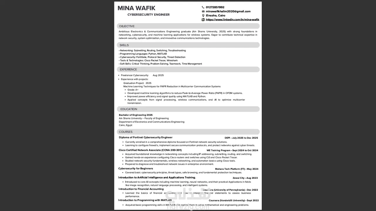 تصميم سيرة ذاتية (CV) احترافية ومتوافقة مع أنظمة الـATS
