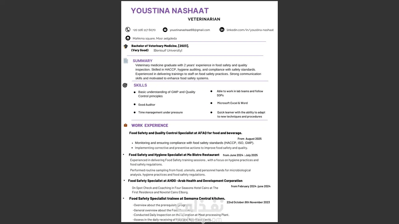 هل تبحث عن سيرة ذاتية احترافية تزيد من فرصك في الحصول على مقابلات العمل؟ سأقوم بإنشاء سيرة ذاتية (CV) متوافقة مع أنظمة الـATS بحيث تمر بسهولة من أنظمة فلترة السير الذاتية وتصل مباشرة إلى مسؤول التوظيف. اللغات المتاحة : العربية أو الإنجليزية (حسب الطلب) مميزات الخدمة 1- سيرة ذاتية ابداعية تضمن لك التميز لاي وظيفة 2- تصميم وفق المعايير العالمية ماذا ستحصل عليه؟ 1- CV احترافي منسق وجذاب صفحة واحدة فقط. 2- متوافق مع أنظمة ATS لضمان وصوله لأصحاب العمل. 3- إبراز خبراتك ومهاراتك بشكل قوي ومؤثر. 4- تسليم بصيغة PDF. سعر الخدمة: - 5 دولار للصفحة الواحدة - اذا اردت الملف المفتوح للتعديل : 10$