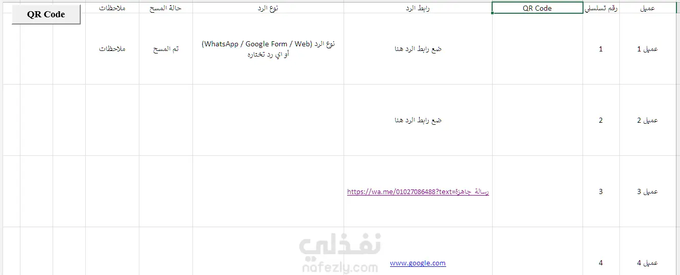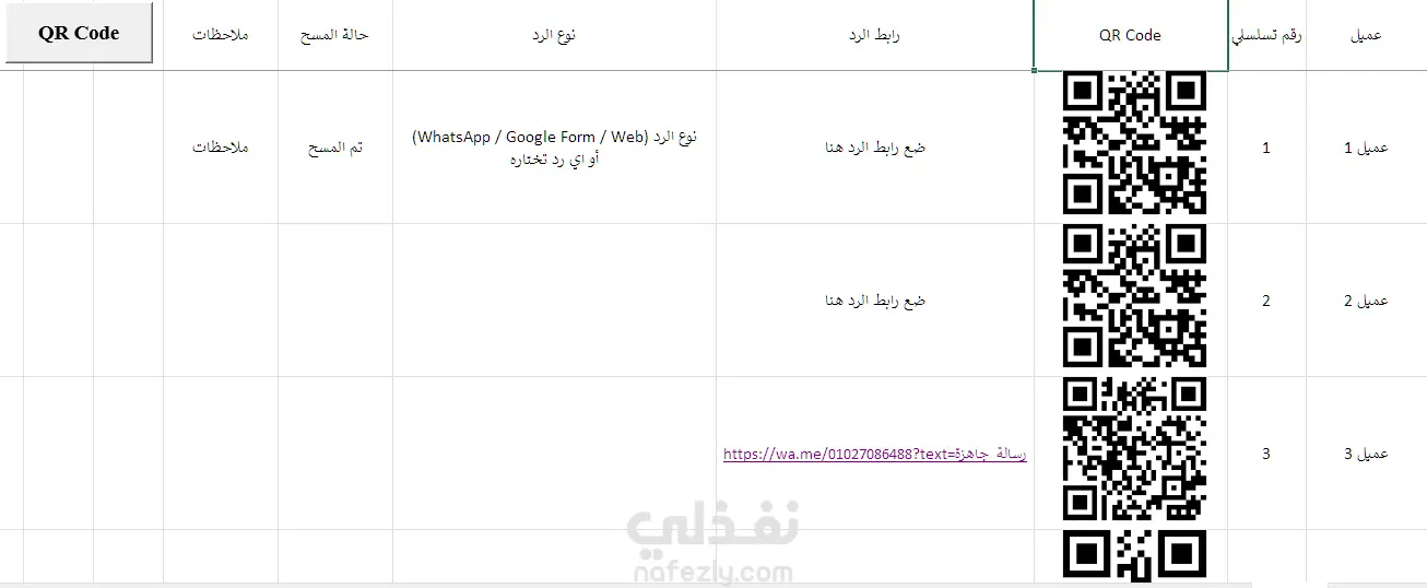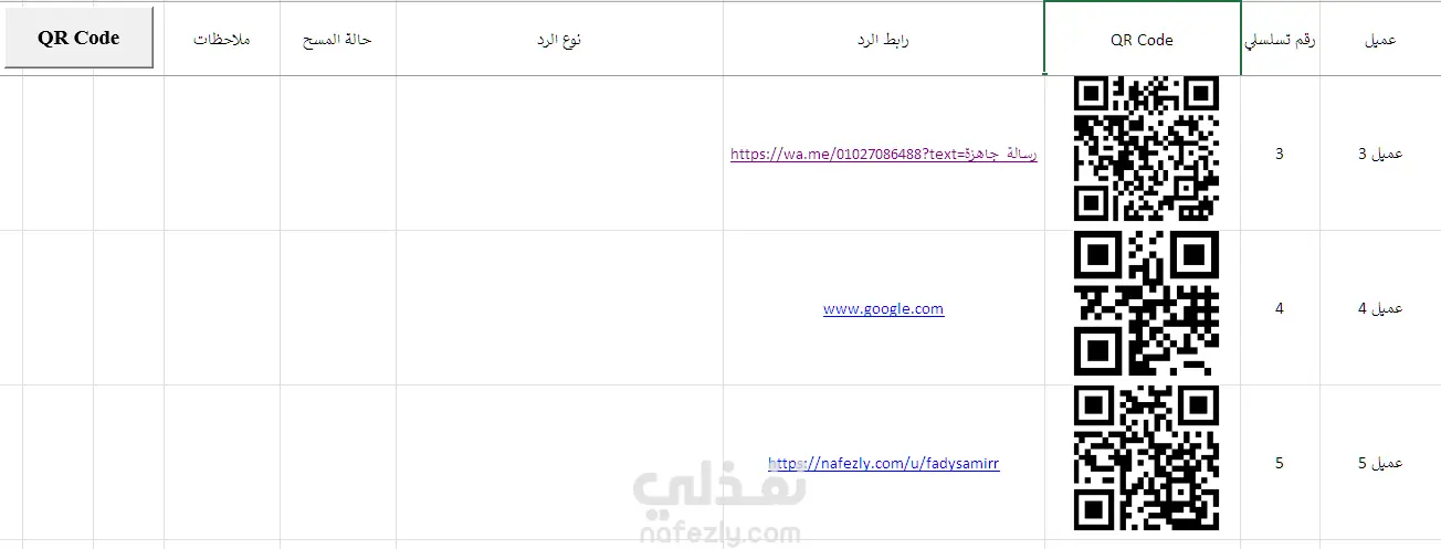 أداة Excel لتوليد QR Codes تسلسلية للرد على العملاء
