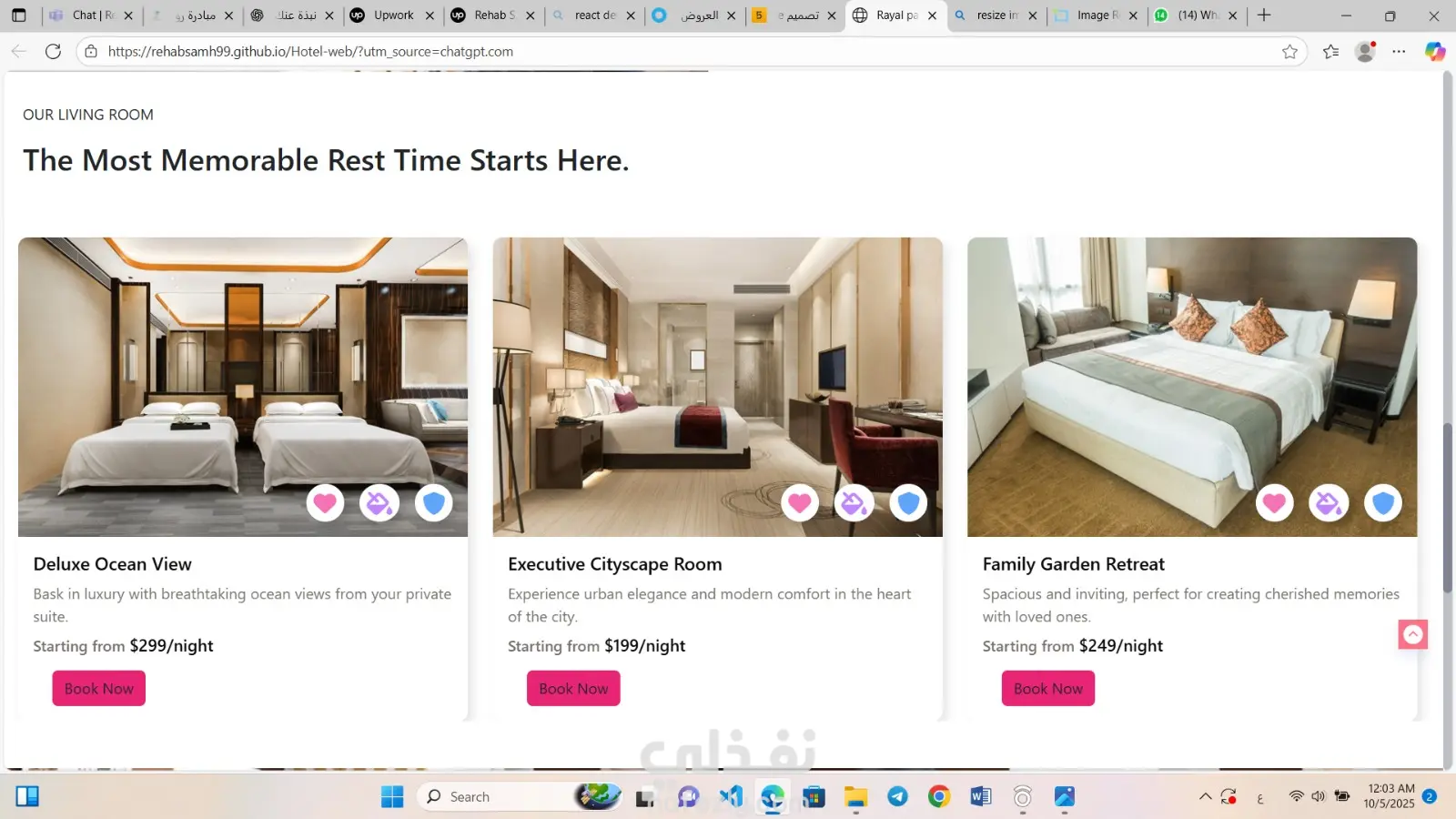 تصميم وتطوير موقع ويب لفندق (Hotel Website)