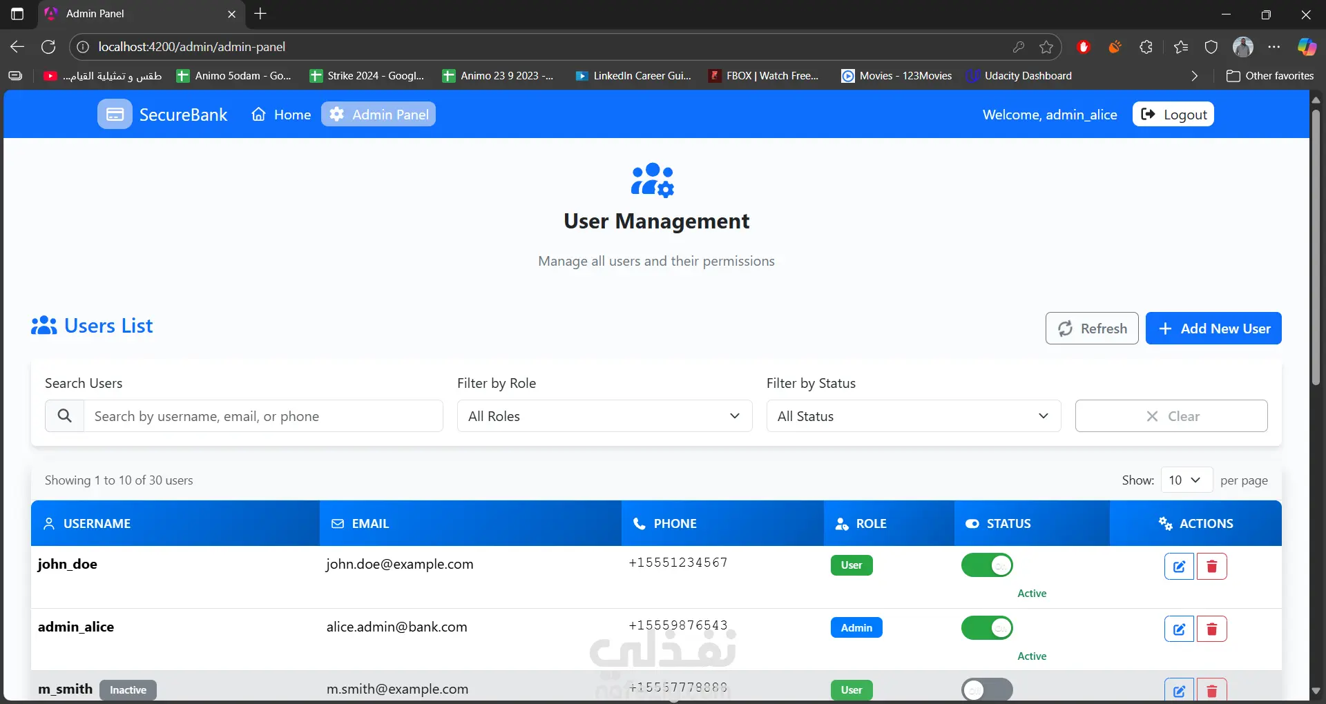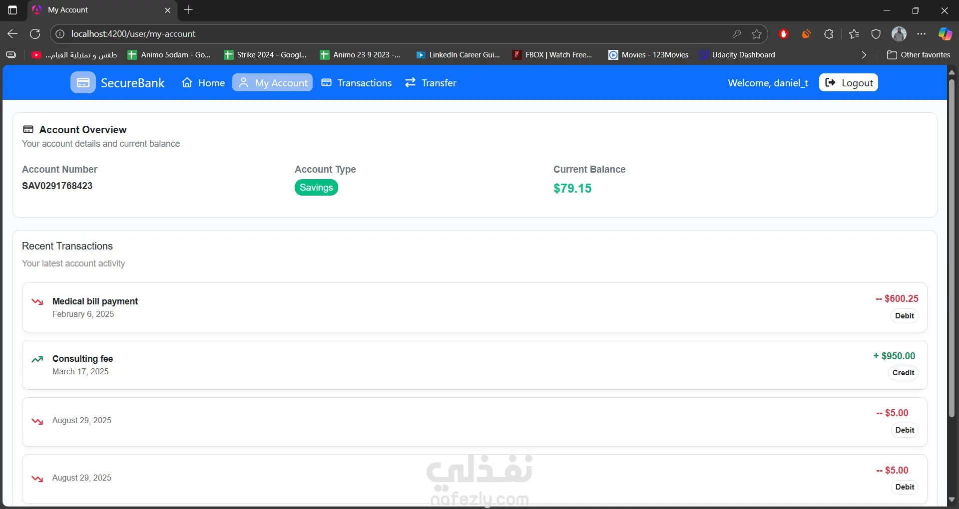 منصّة ويب حديثة وآمنة تم تطويرها لتبسيط العمليات المصرفية الرقمية. يتيح النظام للمستخدمين إدارة الحسابات وإجراء المعاملات ومتابعة الأرصدة لحظة بلحظة، مع لوحة تحكم متكاملة للمشرفين لمتابعة الأنشطة وإدارة المستخدمين بكفاءة. تم بناء النظام باستخدام Angular 20 مع Vite لتوفير واجهة سريعة ومتجاوبة، وباعتماد Node.js وMySQL/MongoDB لتأمين أداء موثوق وقابل للتوسّع. يُبرز المشروع خبرة قوية في تطوير الأنظمة الكاملة (Full-Stack)، وتحسين تجربة المستخدم، وضمان حماية البيانات.