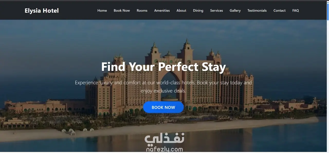 موقع إلكتروني متكامل لفندق Elysia Hotel، تم تطويره باستخدام أحدث تقنيات الويب (HTML, CSS, JavaScript, React.js, Next.js, Bootstrap) ليعكس هوية الفندق ويعرض خدماته بطريقة عصرية تسهّل على العملاء حجز الغرف والتعرف على كل ما يقدمه الفندق من مميزات وتجارب استثنائية.